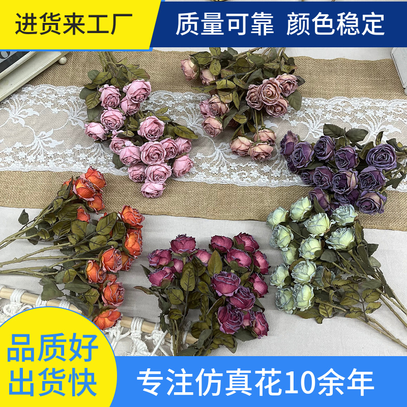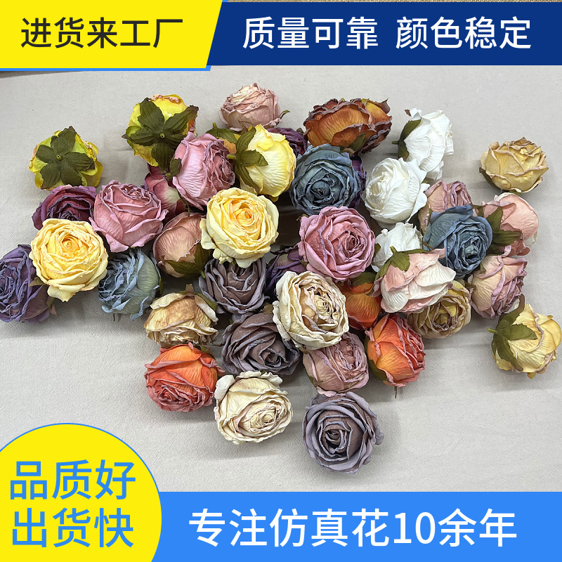 造花、レトロなバラの花頭、シルクフラワー、手作りのヘアピンアクセサリー、外国貿易シルクフラワー、クロスボーダー小さなバラの造花