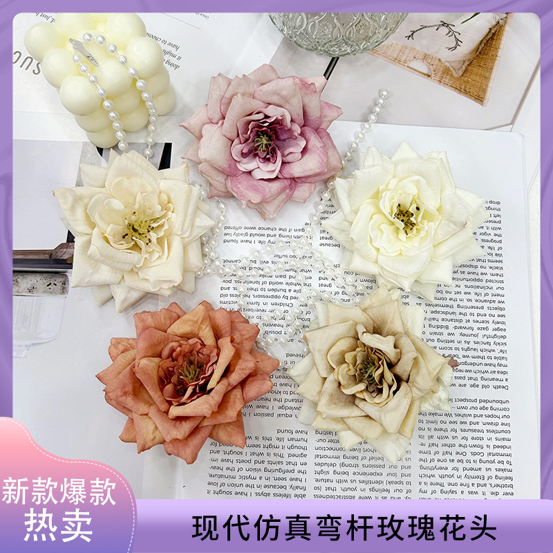 ローズ造花、ローズヘッド、造花、曲枝花、ローズアングル、ローズヘアピン、シルクフラワー、高級貿易造花
