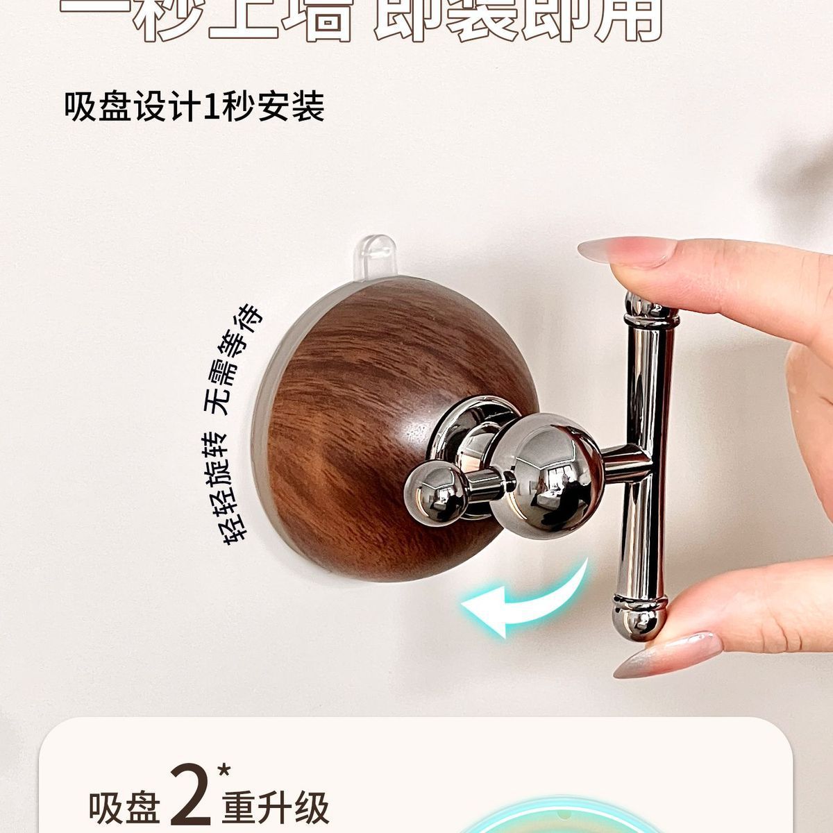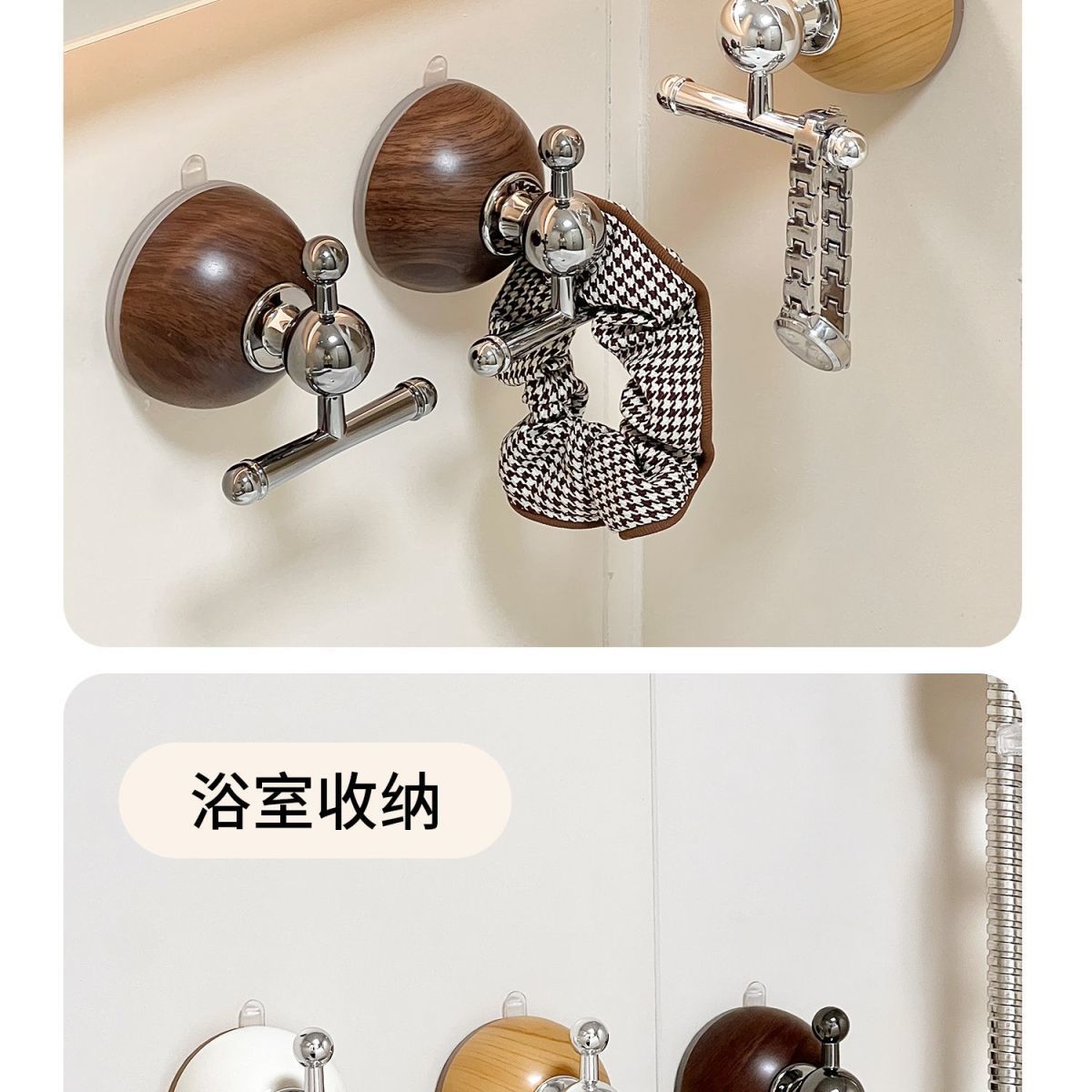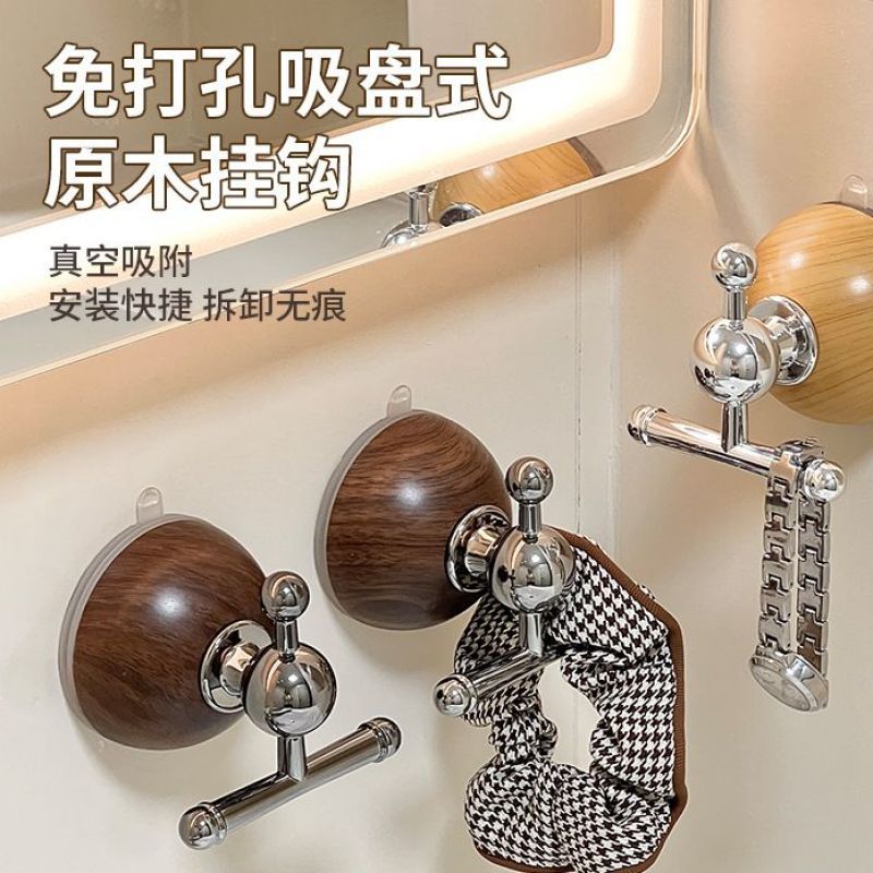 木纹吸盘挂钩强力免打孔玄关门后挂衣钩卫生间强承重无痕浴室粘钩
