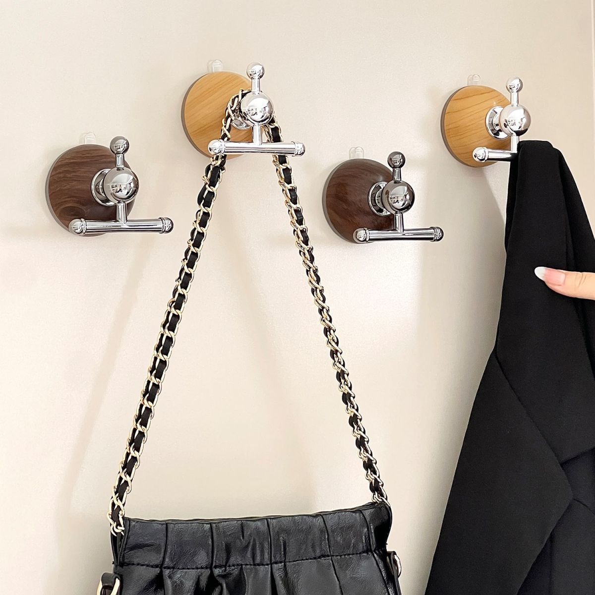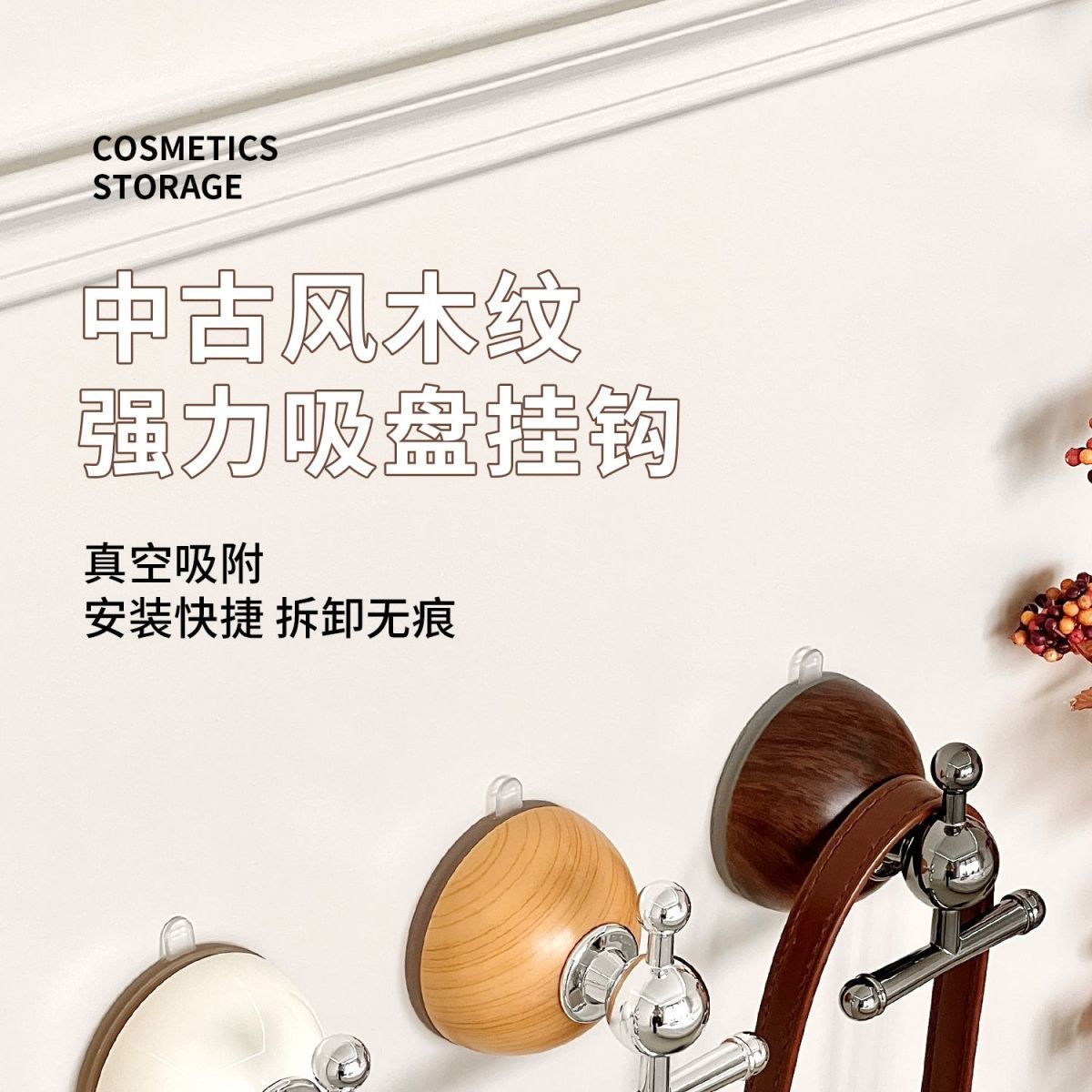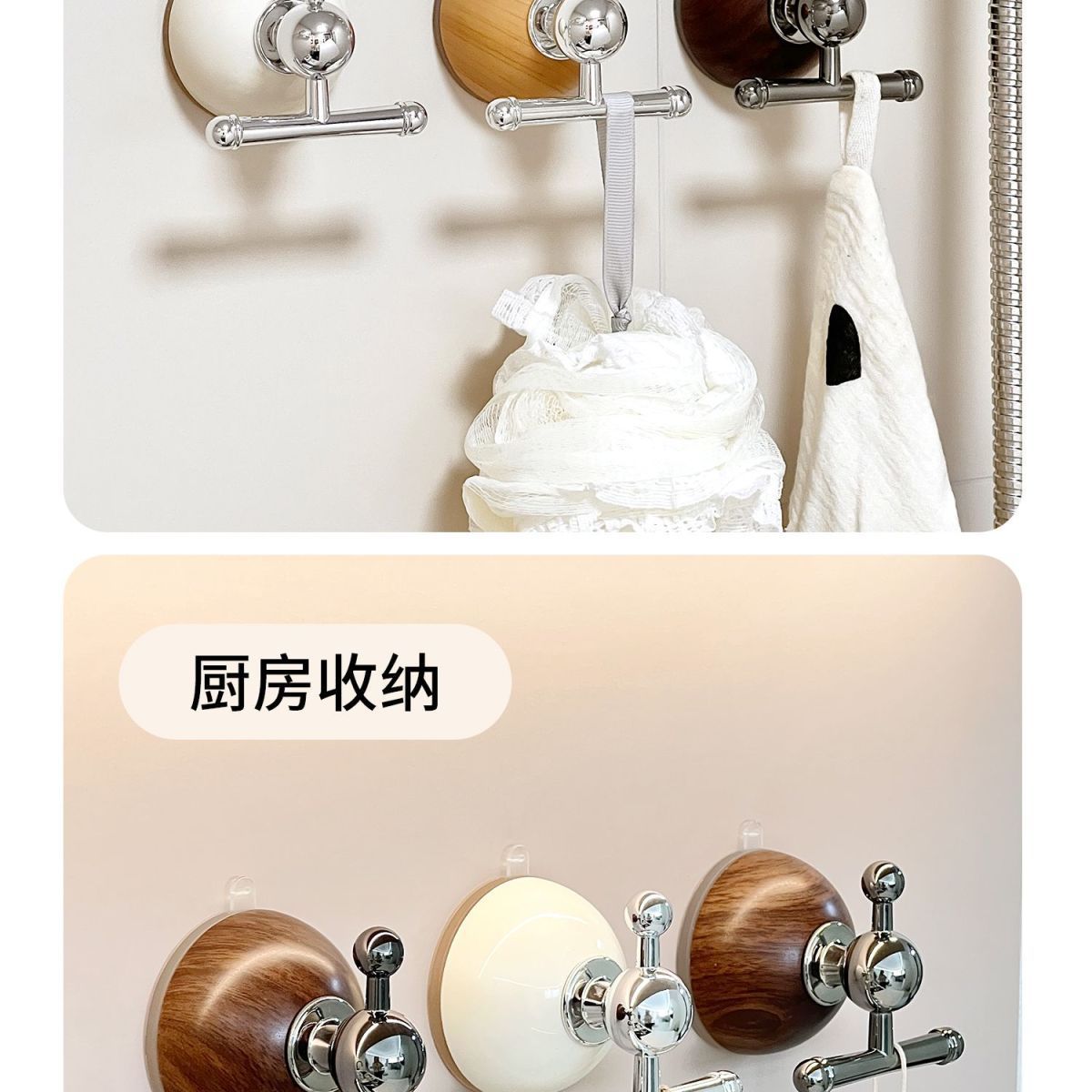 木纹吸盘挂钩强力免打孔玄关门后挂衣钩卫生间强承重无痕浴室粘钩