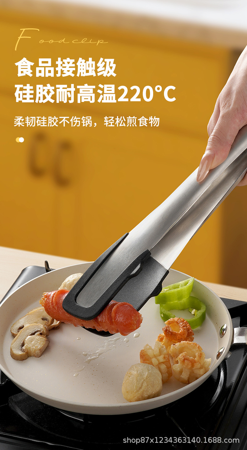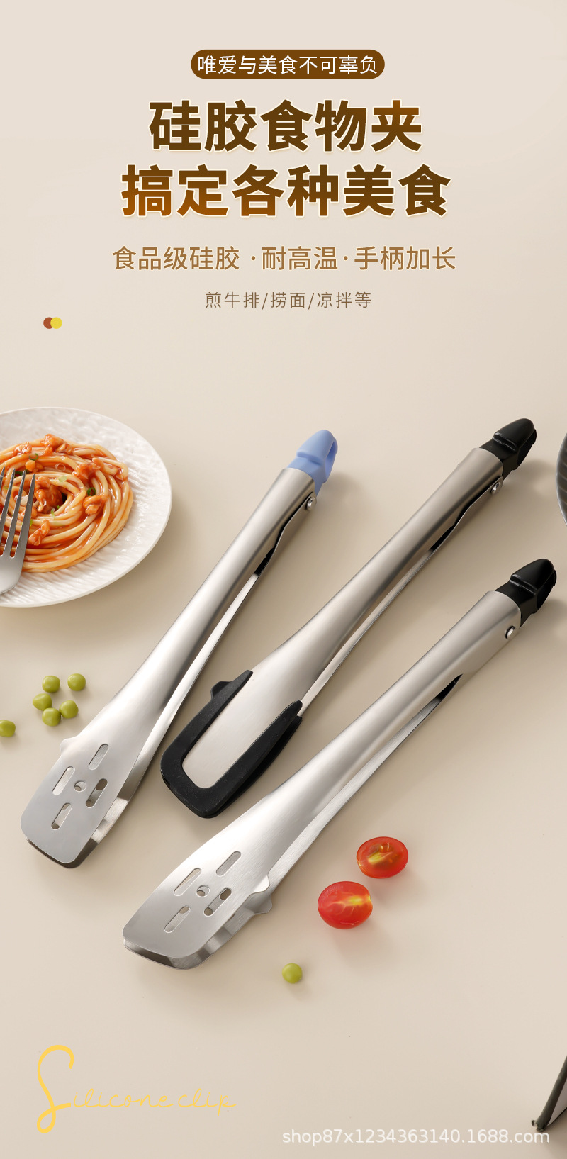 7インチステンレス食品クリップバーベキュークリップステーキクリップクリスマス食品クリップ多機能シリコン食品クリップ