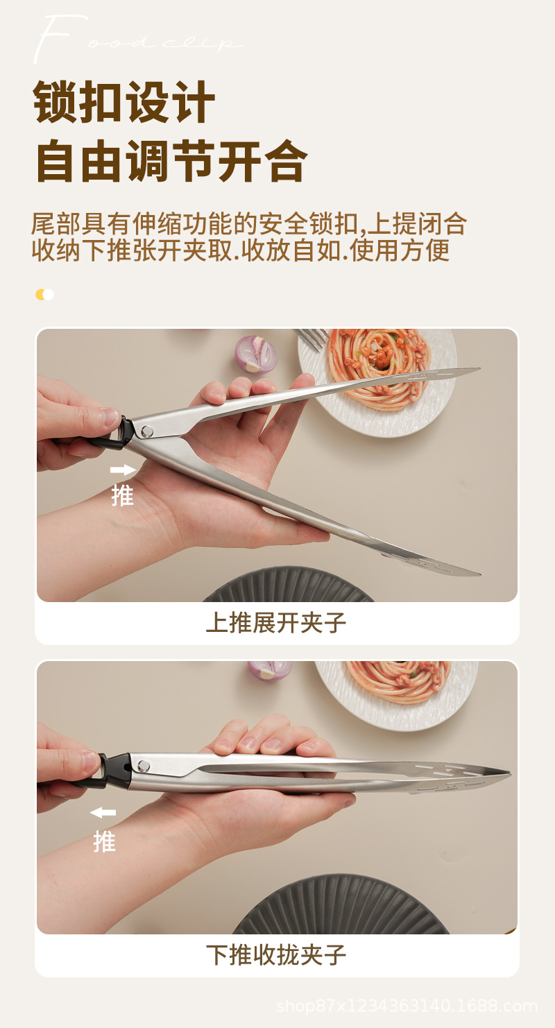 新品430ステンレス食品クリップ11インチ一体クリップバーベキュークリップ焼肉クリップ食品クリップ屋外キャンプバーベキュー