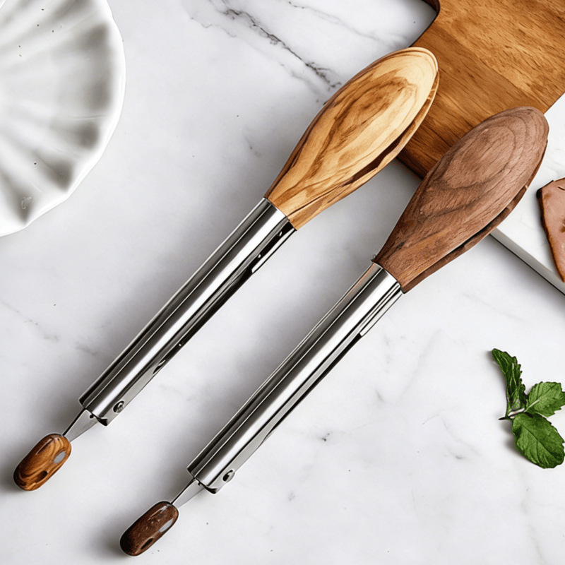 ステンレス鋼フードクリップ 9inch 12inch クルミ木製フードクリップ無垢材バーベキュークリップ多機能火傷防止クリップ在庫あり