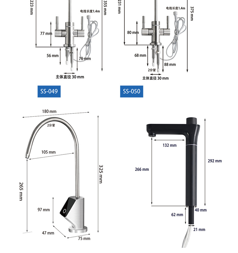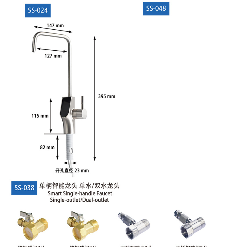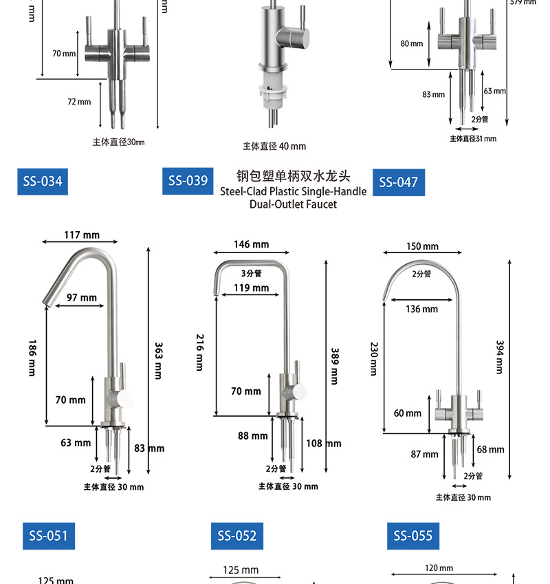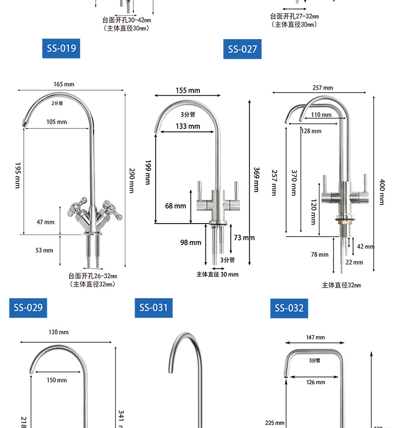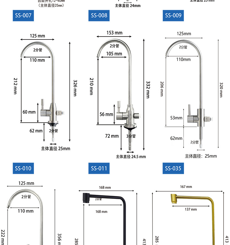仕様 【SS-016】浄水器用2分二口水栓,【SS-012】浄水器用 2分二口水栓,【SS-901】浄水器用2分二口水栓,【SS-033】浄水器用2分二口水栓,【SS-031】浄水器用3分二口水栓,【SS-018】浄水器 2点ダブル水シングルハンドル水栓,【SS-013】浄水器ライトリング表示2点ダブル蛇口