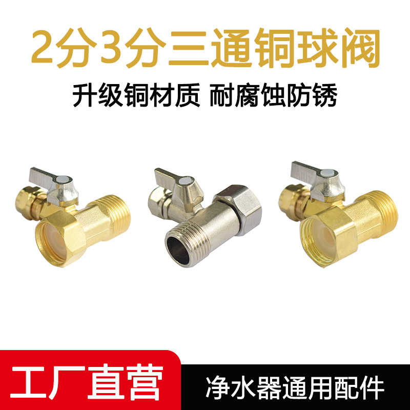 家庭用浄水器入口三方バルブ 2点式 3点式純銅ボールバルブ 直飲み水道管変換継手スイッチ ユニバーサル
