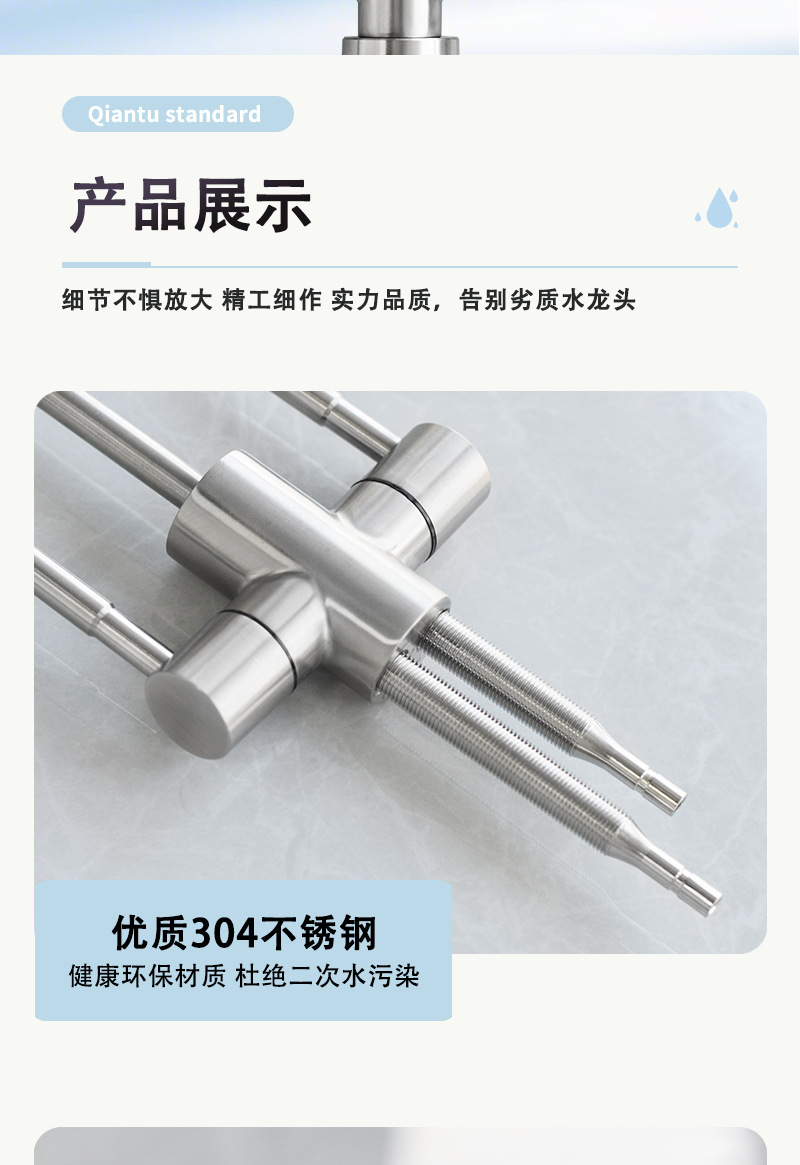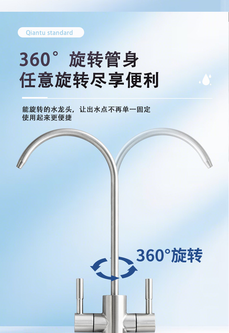 304ステンレス鋼2分単水冷浄水器専用キッチン直飲み二口蛇口回転式家庭用