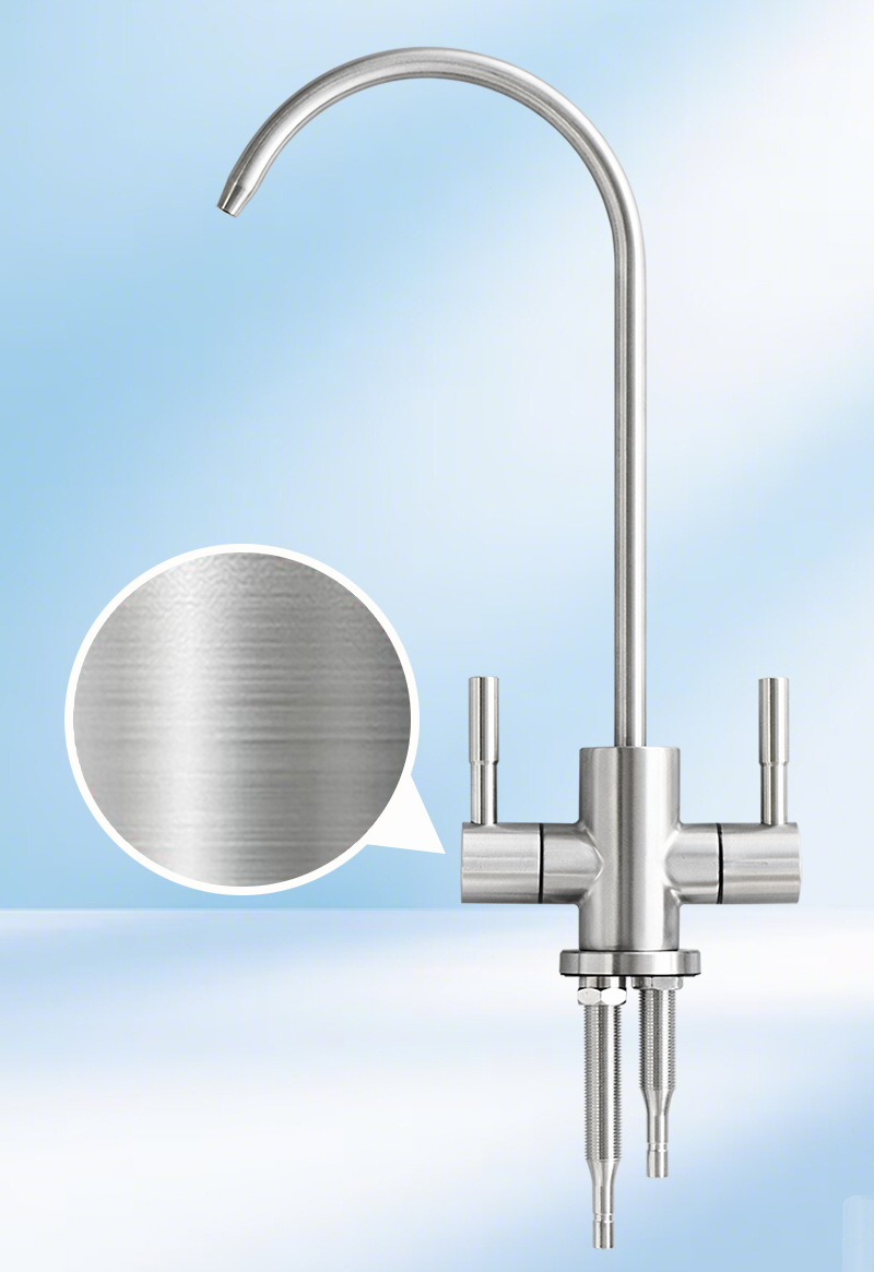 ダブル出水304ステンレス浄水蛇口2分給水2分出水キッチン直飲浄水器グースネック蛇口