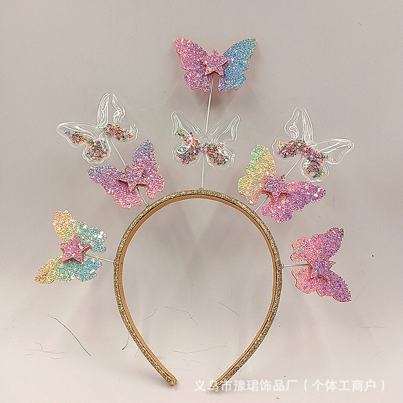 国境を越えたホリデーパーティーヘアアクセサリークリエイティブ小さな新鮮な五芒星子供用ヘアフープヘアアクセサリー金粉スパンコールヘッドバンド卸売