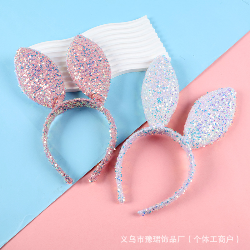 新款跨境韩版亮片兔耳朵发箍儿童可爱甜美仙女风卡通兔耳发饰