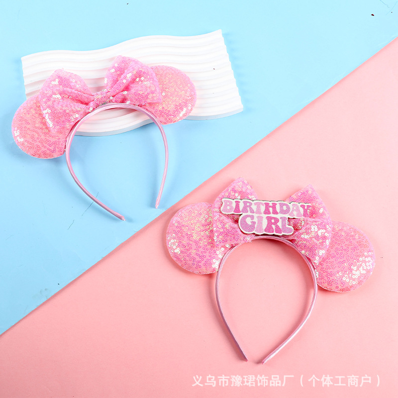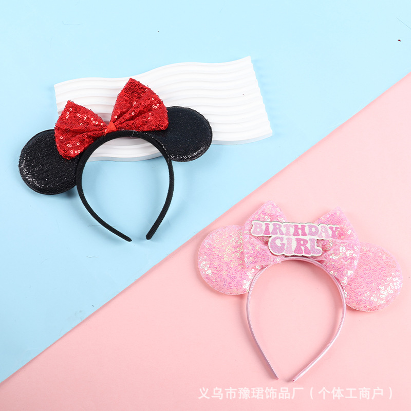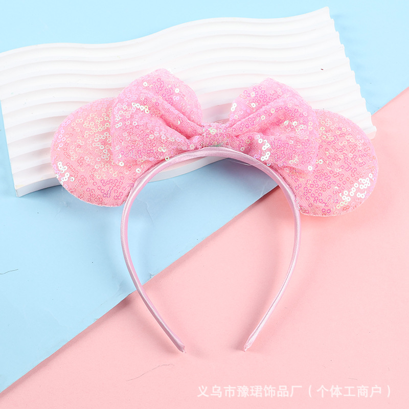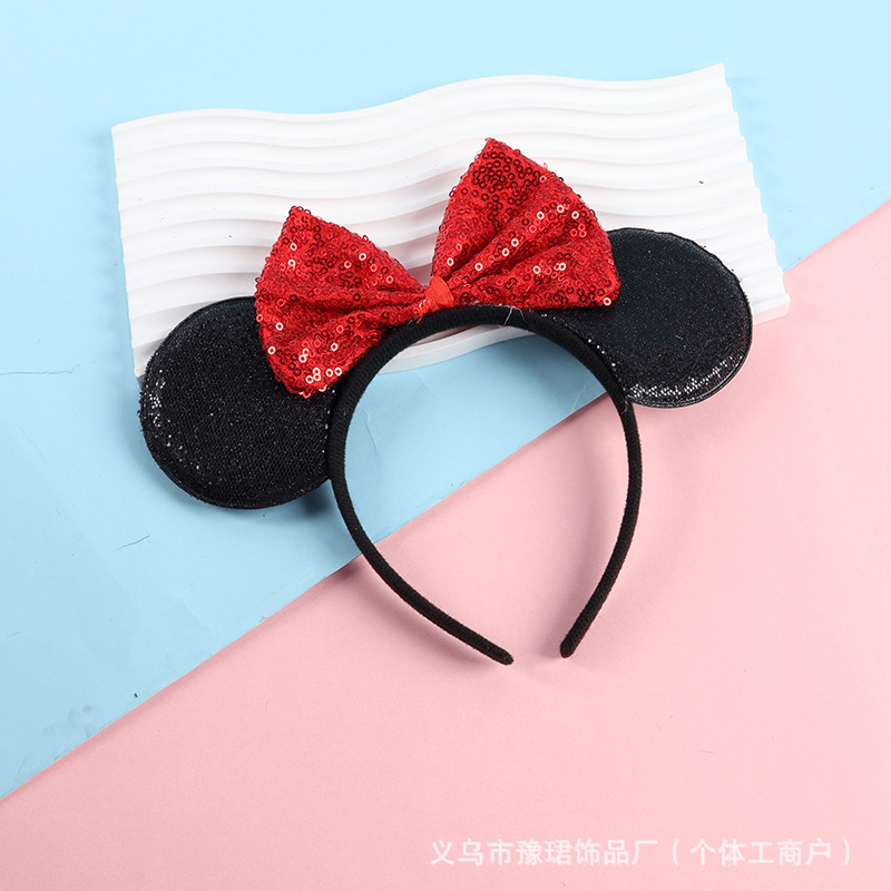クロスボーダー子供の漫画ヘアアクセサリーテーマパーティーヘッドバンドフルスパンコールミニーリボンヘアアクセサリー子供ミッキーヘッドバンド