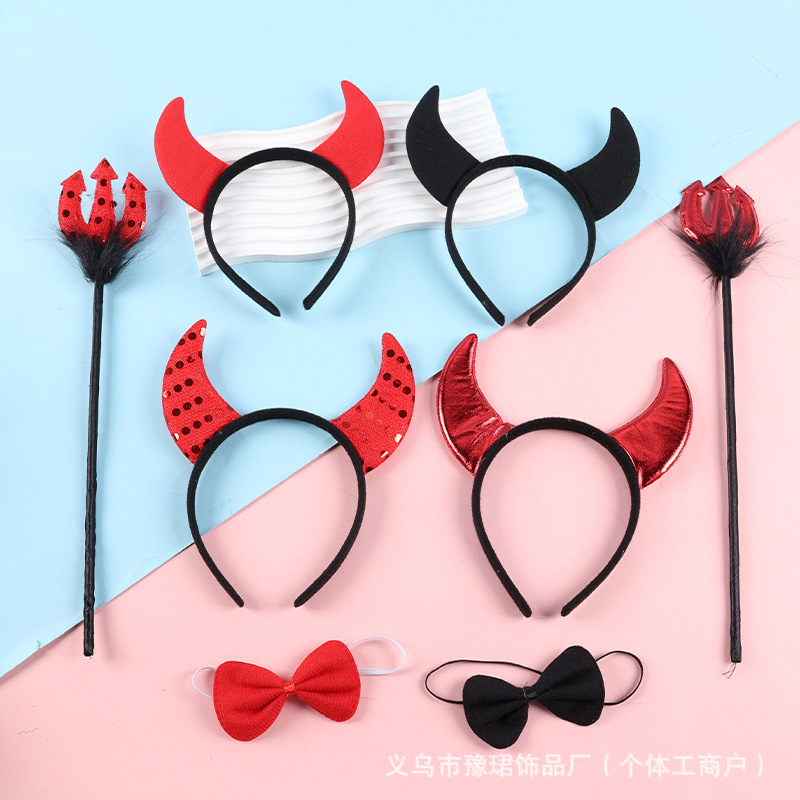 ハロウィンかわいい悪魔装飾セットホーンヘッドバンドヘッドバンド悪魔フォークホリデー装飾小道具メーカー卸売