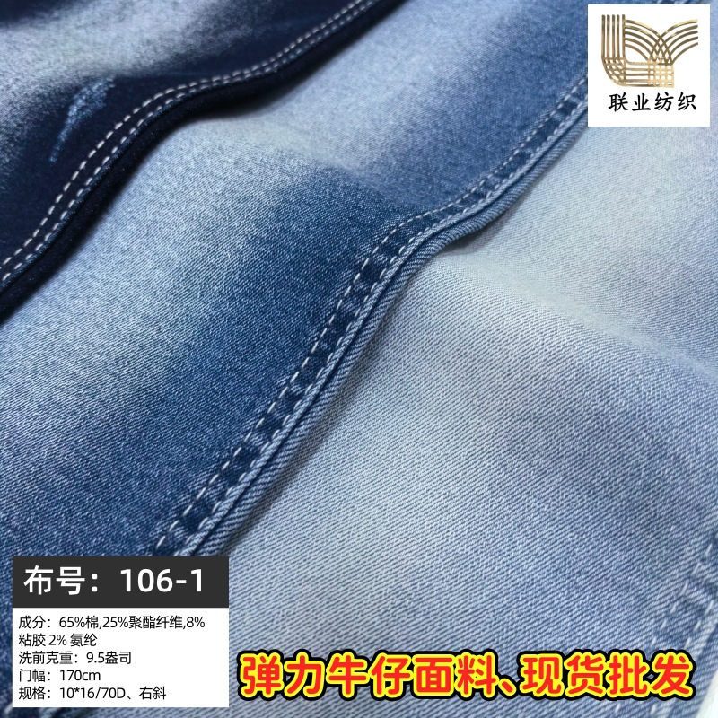 綿65% ポリエステル33% ストレッチウォッシュデニム 8オンス 春夏用SP混紡生地 衣料品生地 在庫あり
