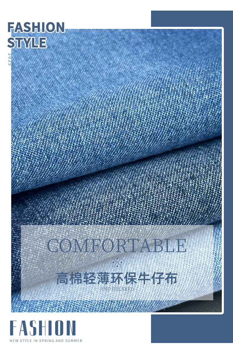 洗濯不要の綿高弾性デニム生地春と夏の柔らかく通気性のあるデニム生地衣類バッグ生地在庫あり