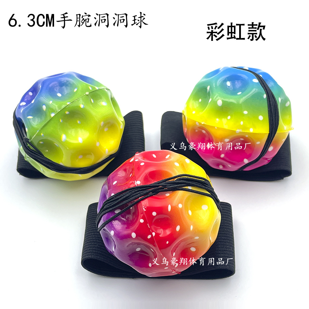 跨境月球石弹力球带绳回弹手腕球弹力洞洞球儿童玩具弹跳球高弹球