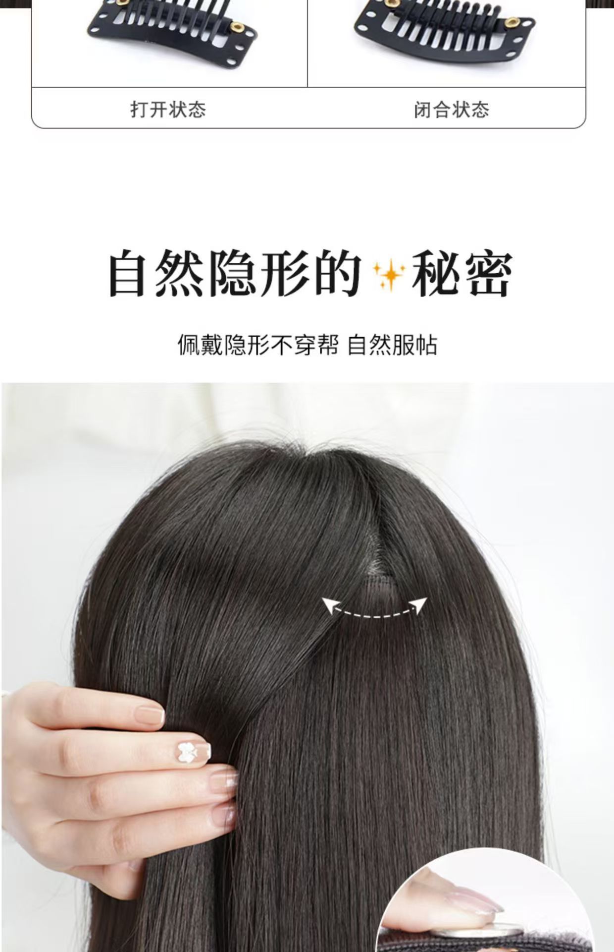 女性用3Dフレンチエア前髪ウィッグ、頭頂部再植、人工毛、自然な額カバー、白髪前髪ウィッグ