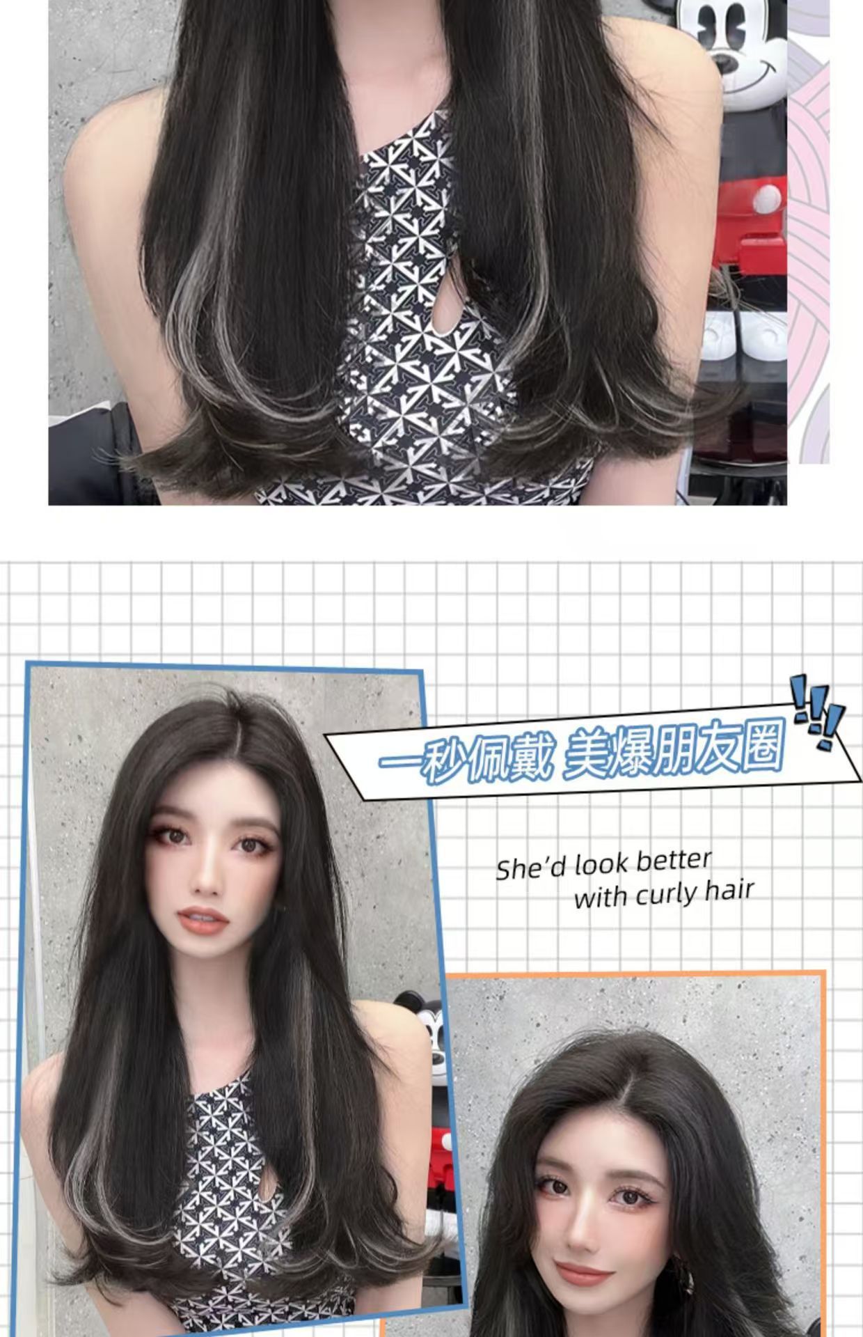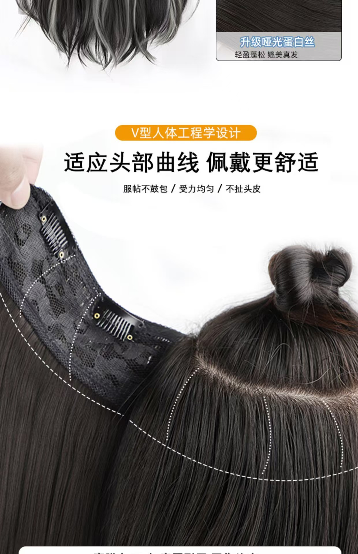 V ワンピース パーティクル ディッキング シームレス シミュレーション ヘアエクステンション、薄くて目に見えない、髪のボリュームを増やす、マイクロカーリング パーティクル ディッキング インナー カーリング ウィッグ