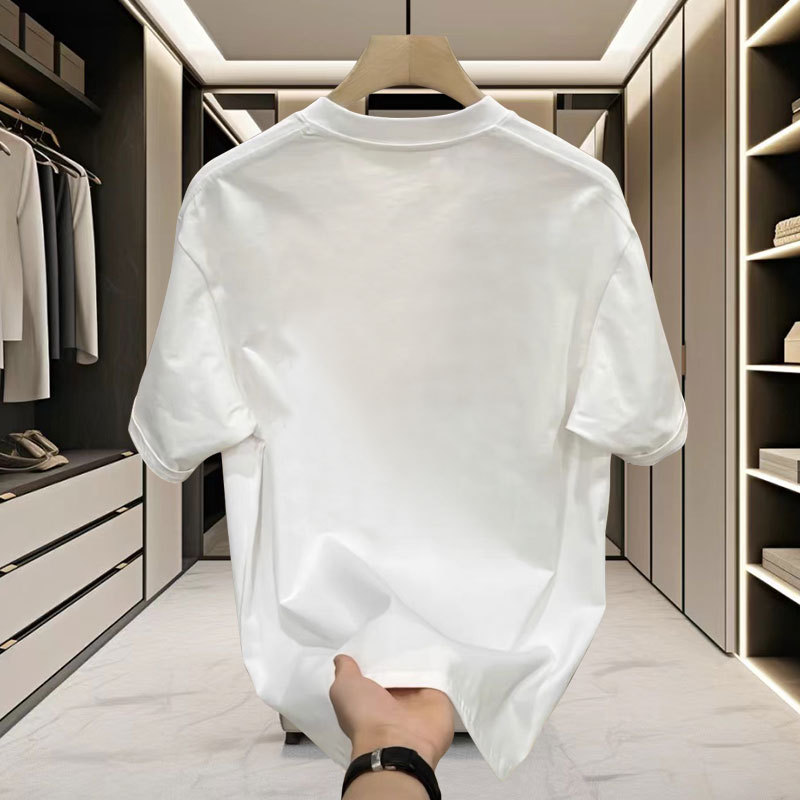 2025新型半袖男性トレンドゆるいtシャツ軽贅沢ファッションホットドリル半袖ゆるい丸首半袖男性tシャツ