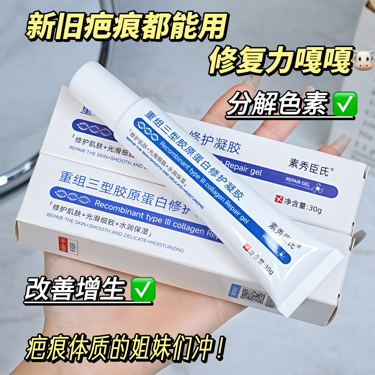 素秀臣氏重组IIl型胶原蛋白修护凝胶补水保湿亮肤淡痘印软膏代发