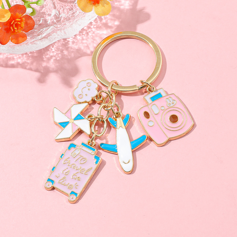 新しい記念オイルドリップアクセサリー地球スーツケース熱気球飛行機キーホルダー装飾ペンダント卸売