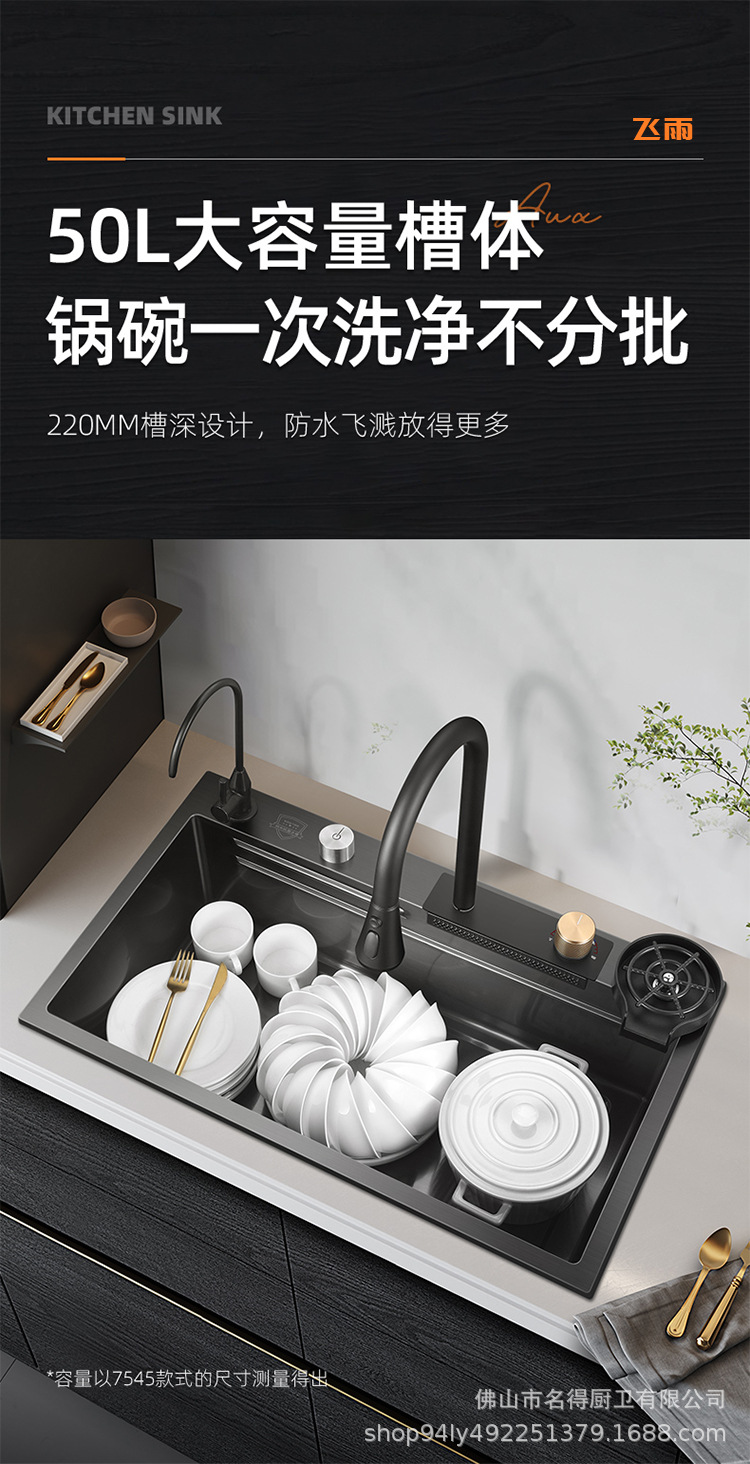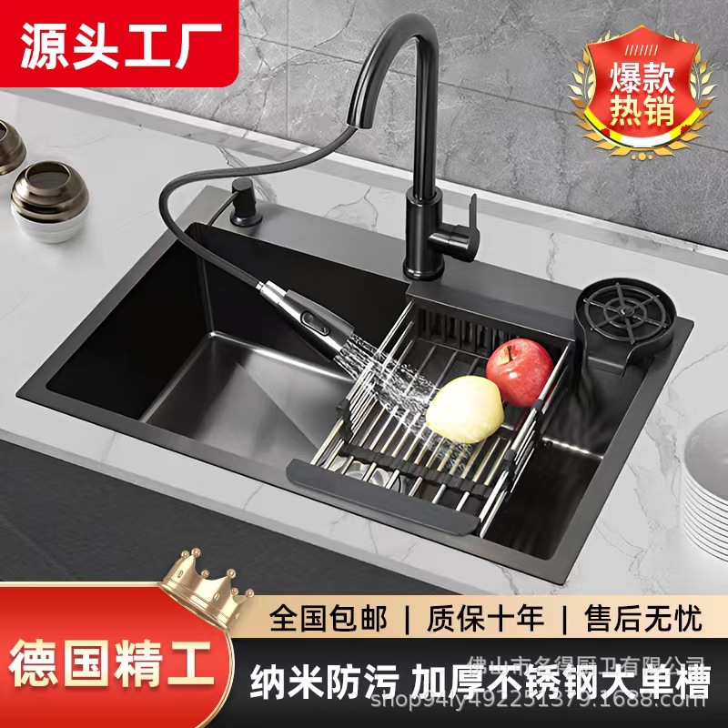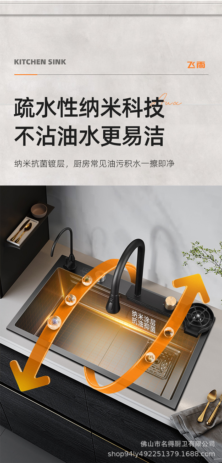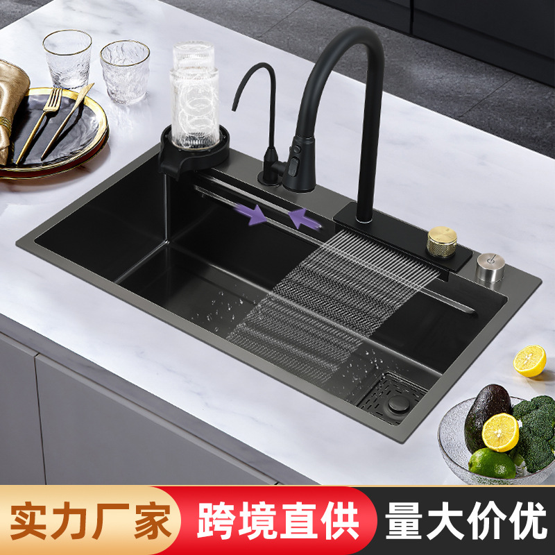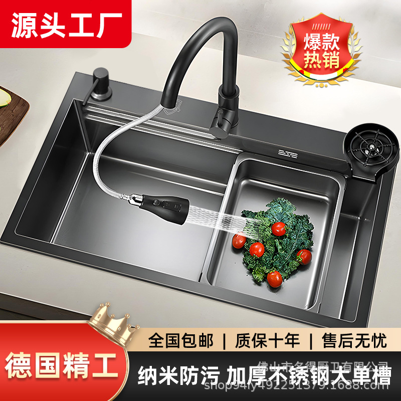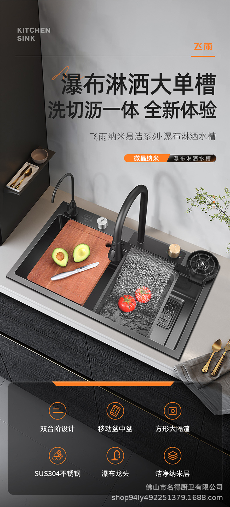纳米飞雨瀑布水槽厨房加厚不锈钢洗碗水池大单槽洗菜盆