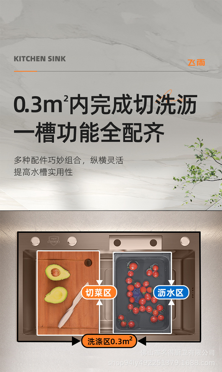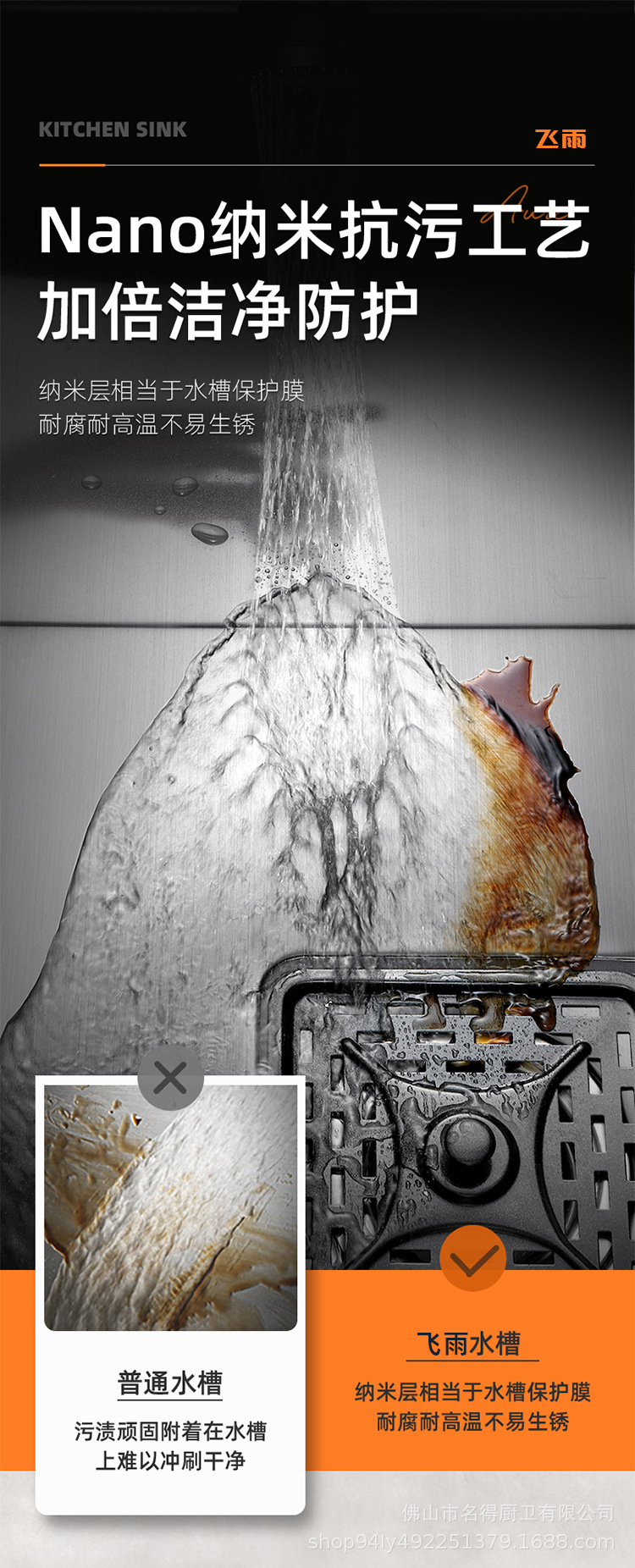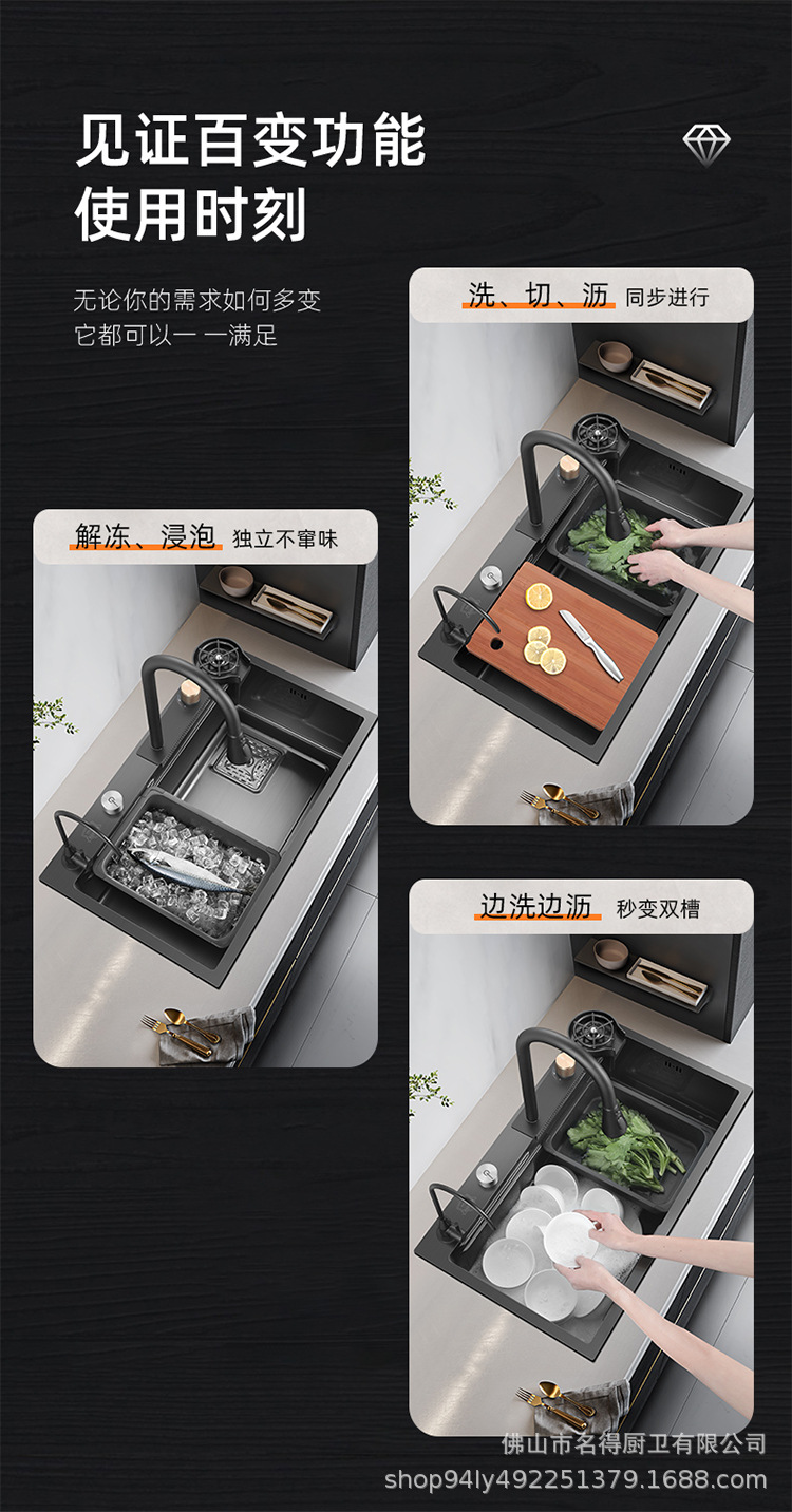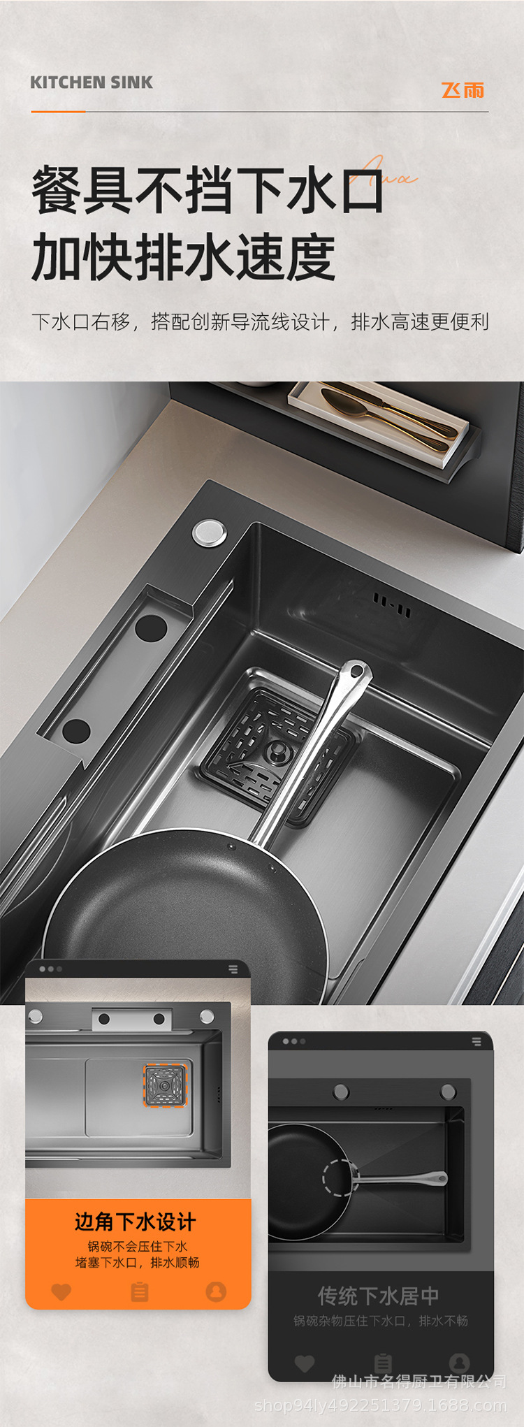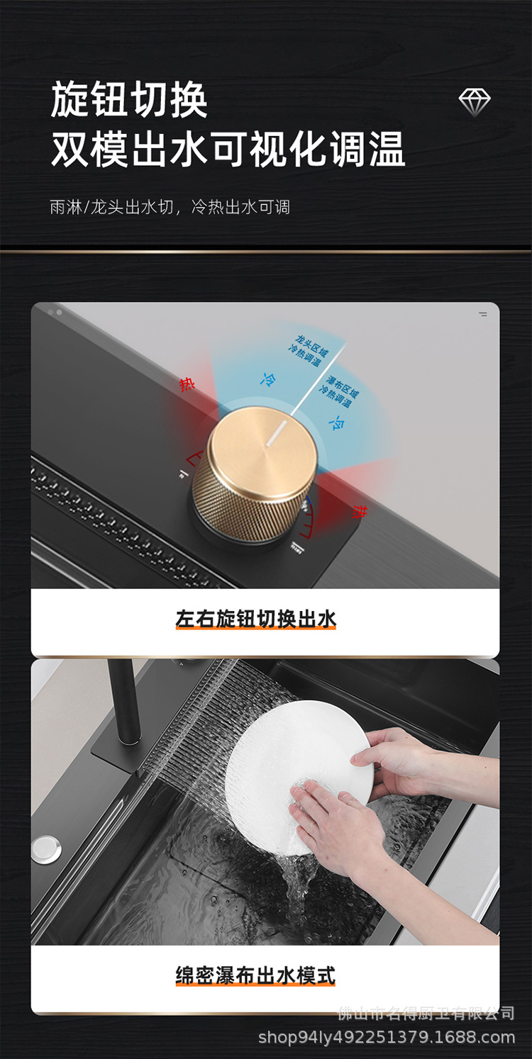 纳米飞雨瀑布水槽厨房加厚不锈钢洗碗水池大单槽洗菜盆