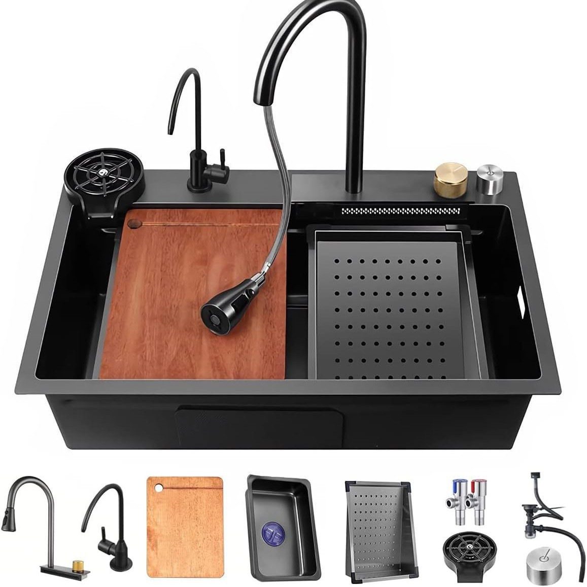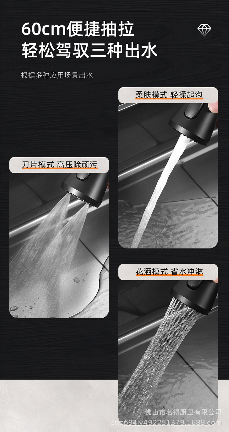全配置304不锈钢水槽厨房水槽飞雨抽拉瀑布龙头一体大单槽洗菜盆