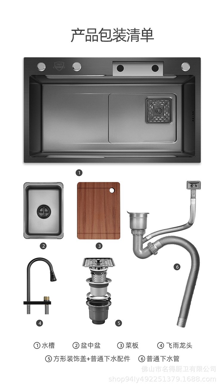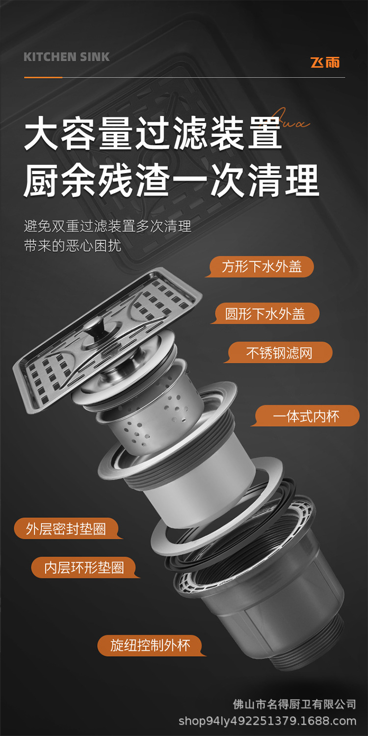 飛雨水槽厨房滝蛇口洗濯盆黒精鋼ステンレス皿洗い池ネット赤日式大単槽