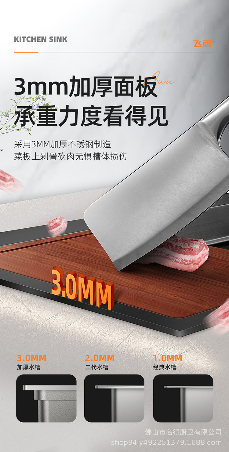 ステンレス製キッチンシンク、カスタマイズされたシンク、まな板、洗浄と切断一体型の厚みのあるシンク、シングルシンク、ナノ防汚