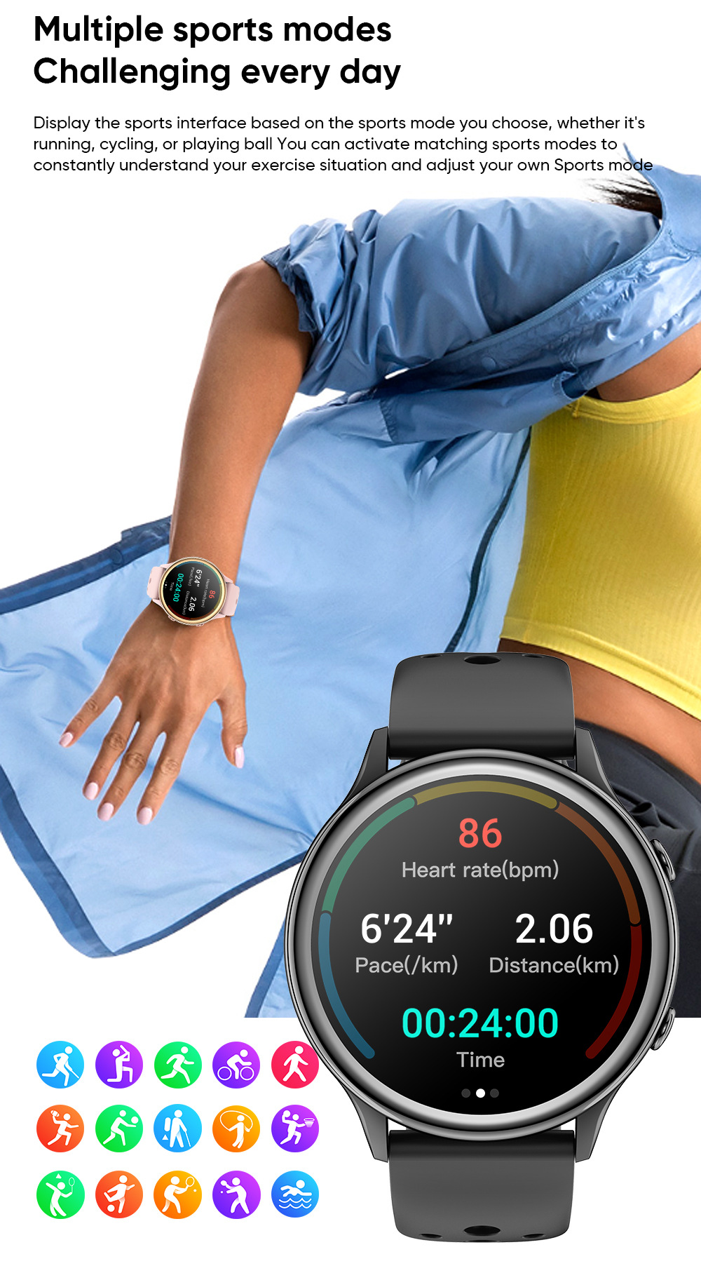 yesido智能手表 跨境代发长续航大容量监测心率高清通话 运动手表