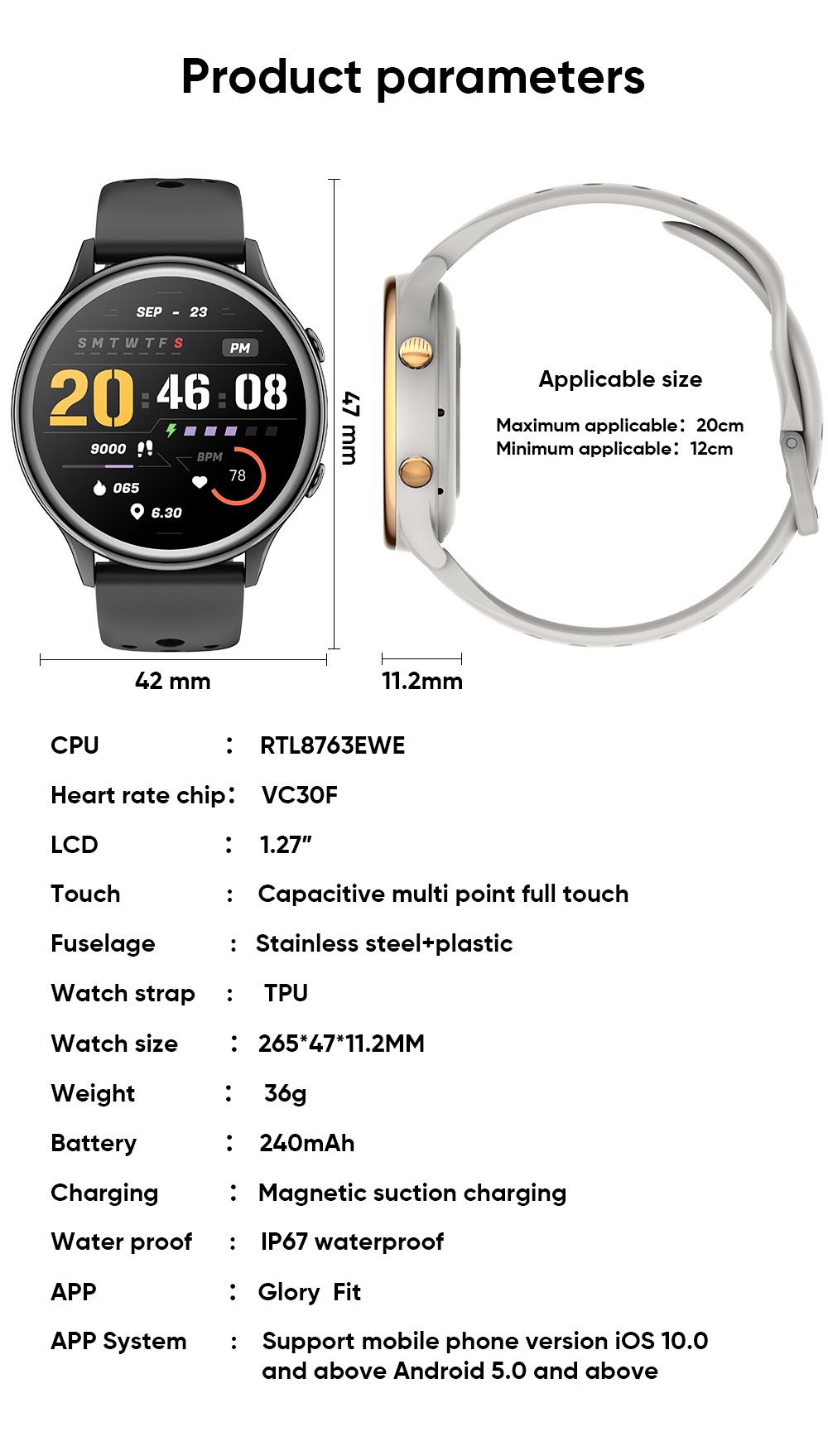 パッケージリスト 本体*1 時計ストラップ*1 充電ケーブル*1 取扱説明書*1