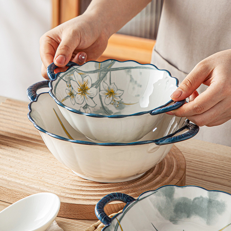 高い顔の値の日本式の双耳の大きいスープの碗の新型の陶磁器の家庭の大きいサイズの顔の碗のサラダの碗のナットの粉のスープの碗