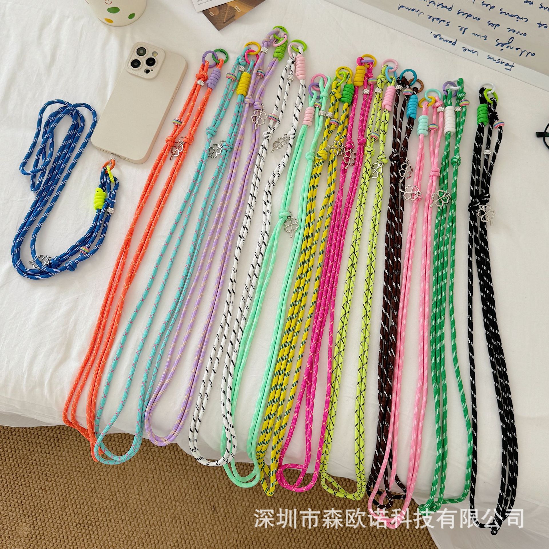 韓国風インスタ映えドーパミン織りロング斜め掛けストラップ式携帯電話ストラップ、アウトドア用肩掛け・首掛け