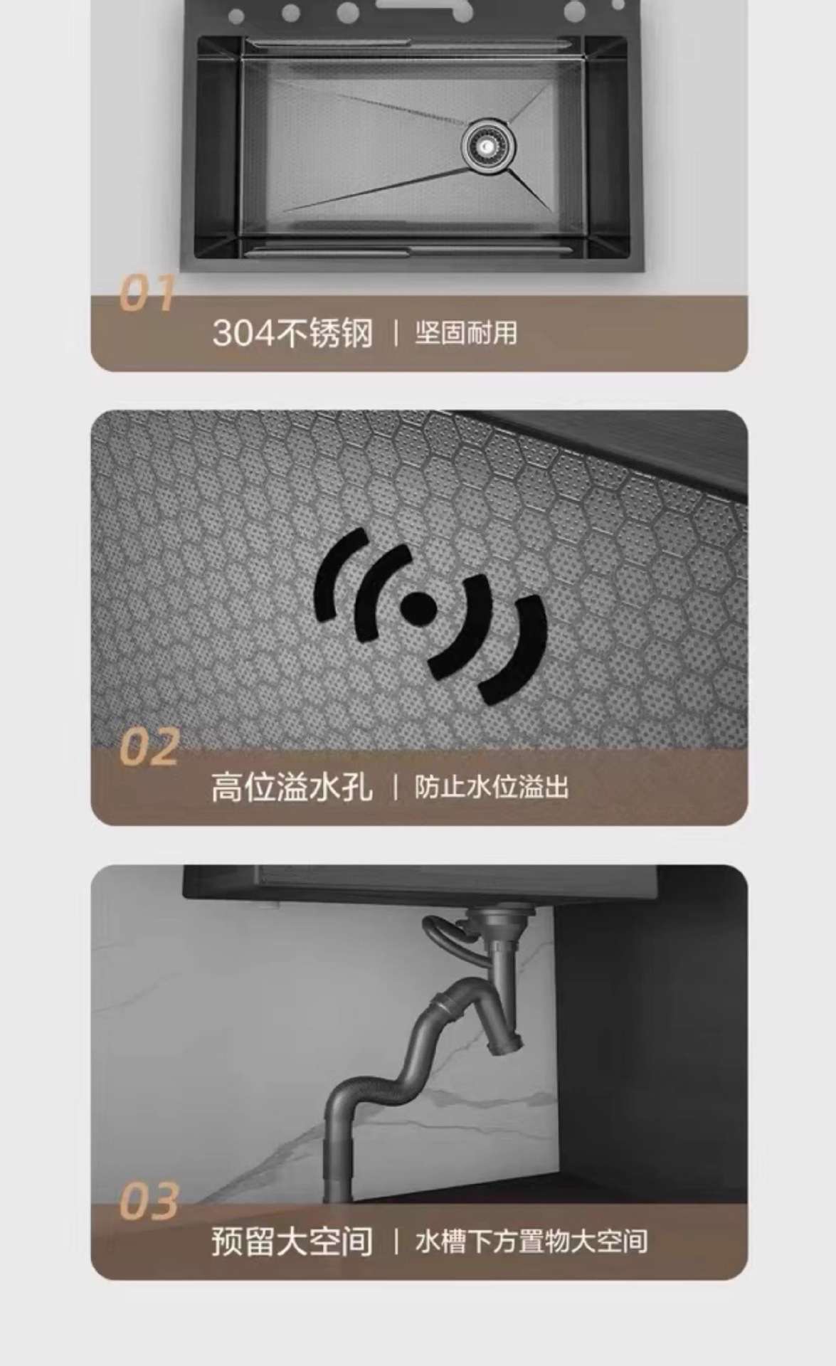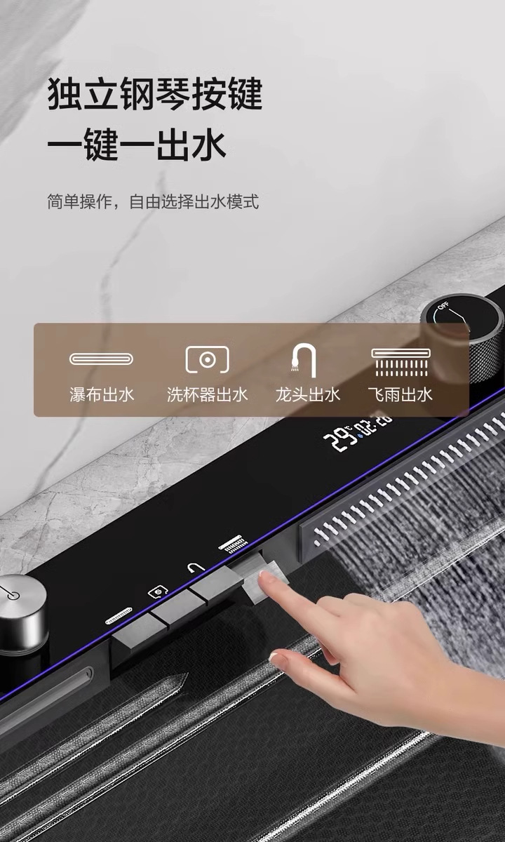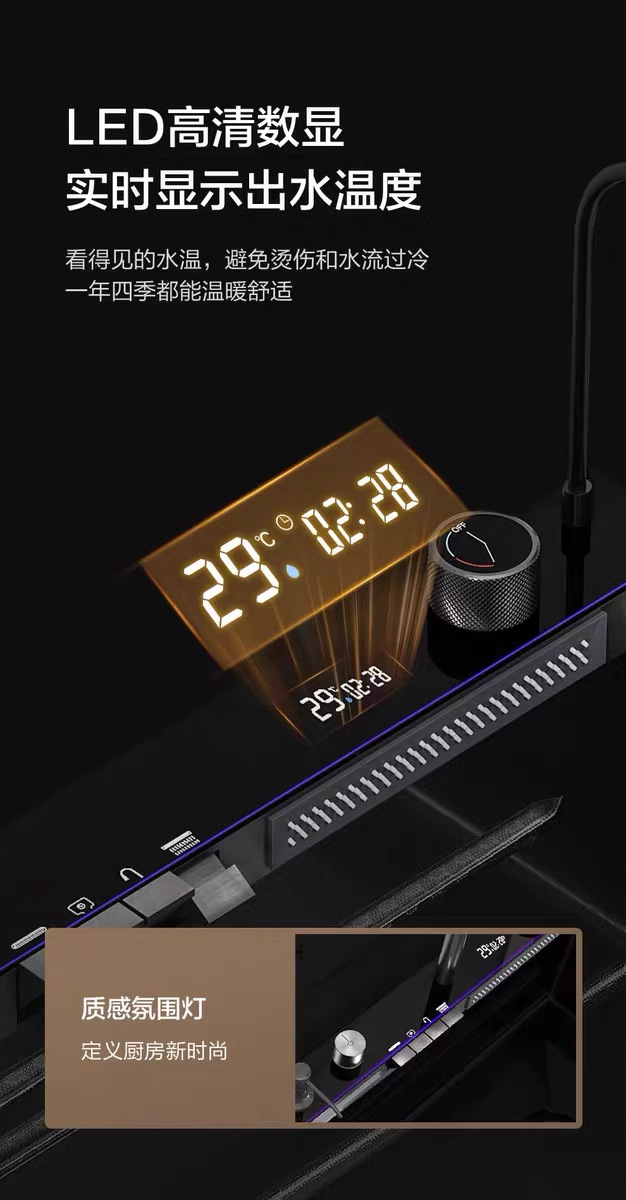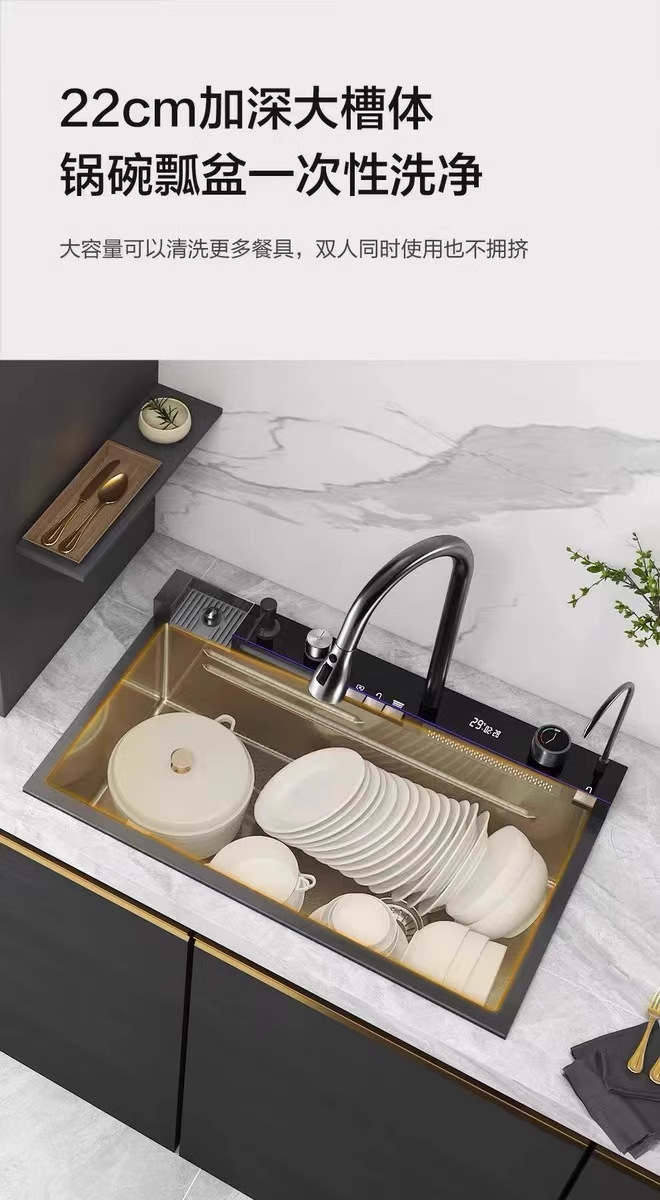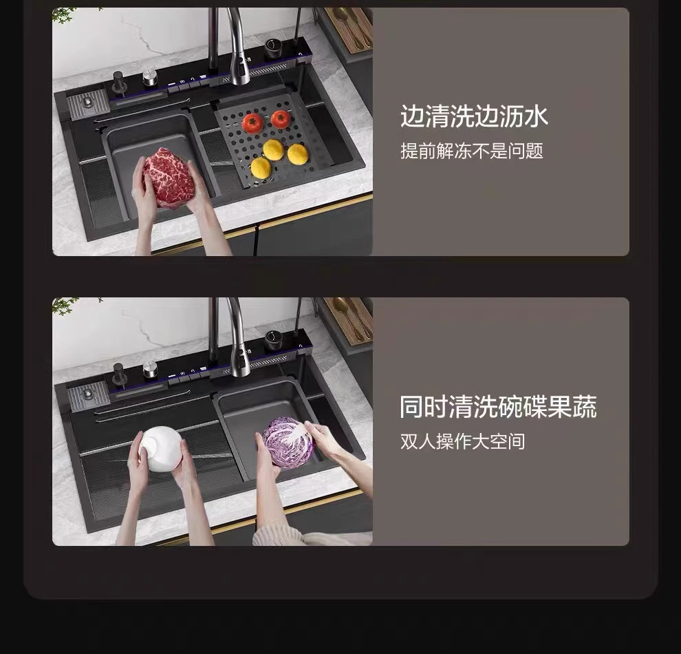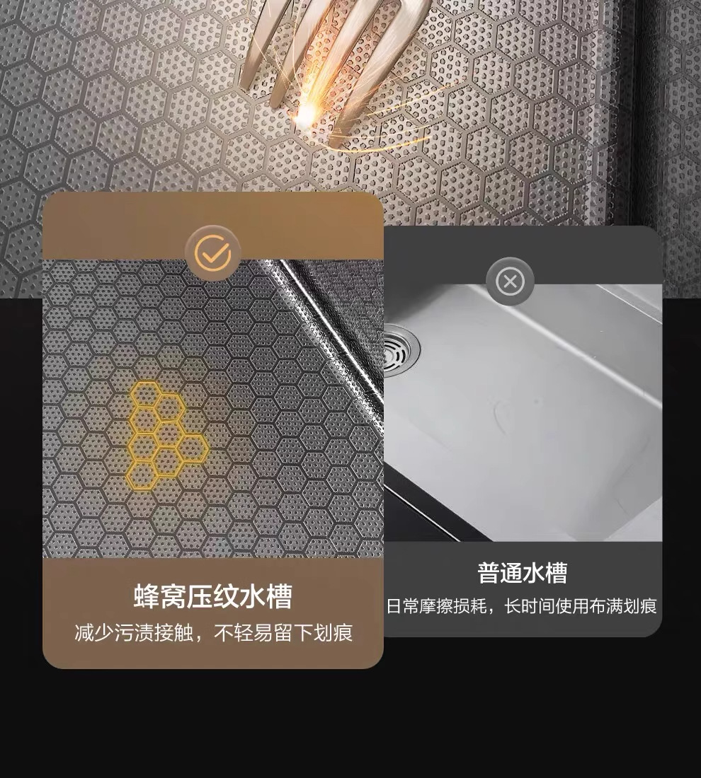外贸鲸鱼钢琴数显飞雨瀑布水槽大单槽蜂窝纹304不锈钢厨房洗菜盆
