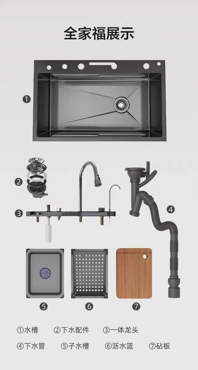クジラステンレス大単槽多機能圧紋デジタル表示厨房ナノ水槽家庭用洗面器洗面器