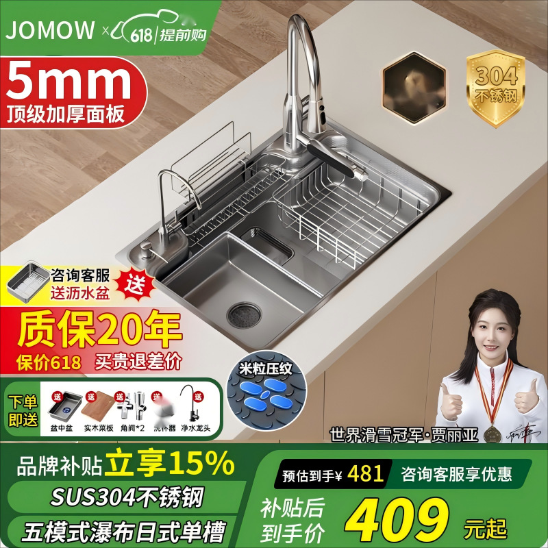 特厚モデル5.0ネット赤三孔階段小米粒304ステンレス洗面器台所大単槽洗水槽