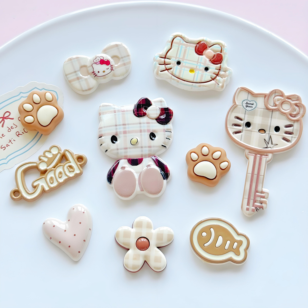 光沢のある可愛いKT猫樹脂DIY装飾品アクセサリー、スマホケース、穴あき靴のデコレーション、DIYヘアピン、ヘアアクセサリー素材