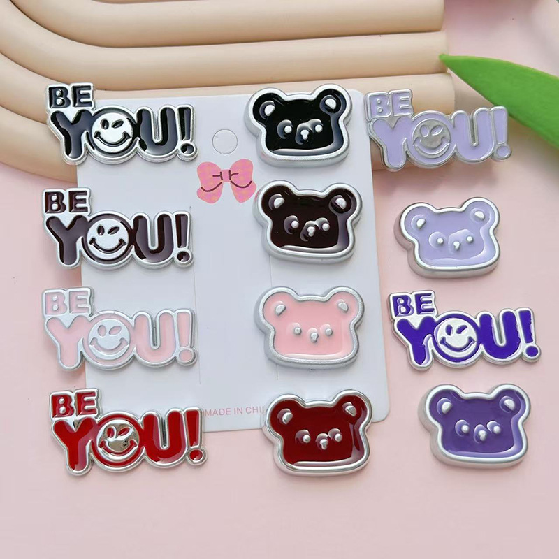 漫画風クマDIY樹脂製アクセサリー、スマホケース用パッチ、クロックス用飾り、靴の花、手作りヘアアクセサリー材料