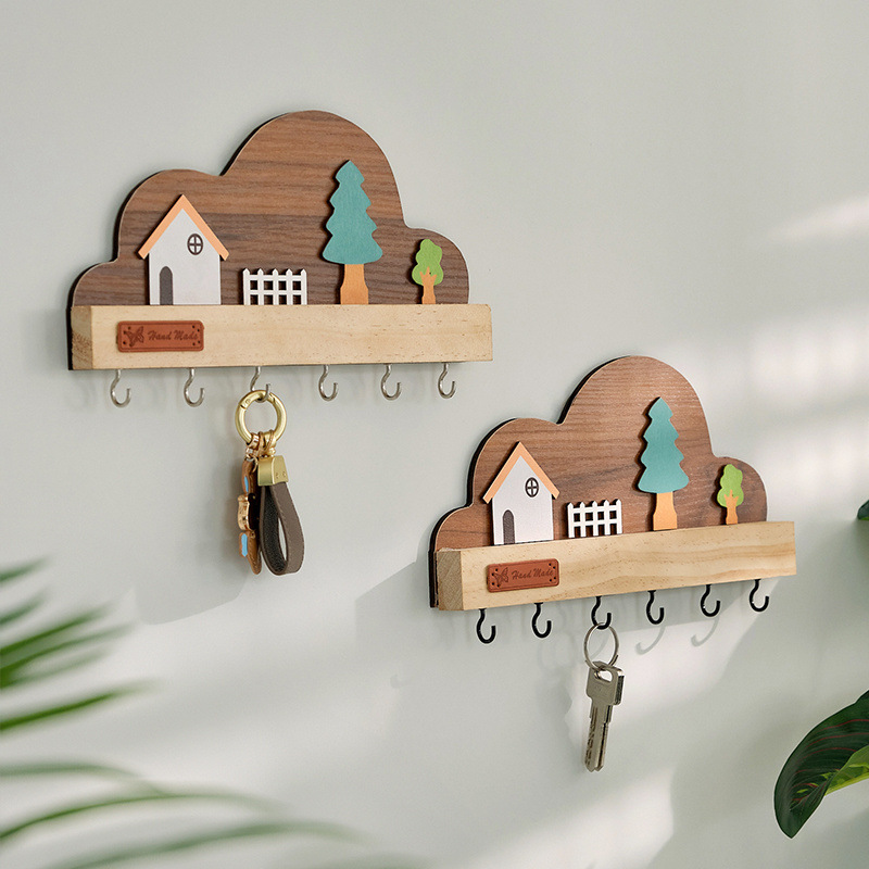 ❈ 2025 玄関キーハンガー収納イン無垢材パンチ壁フックドア