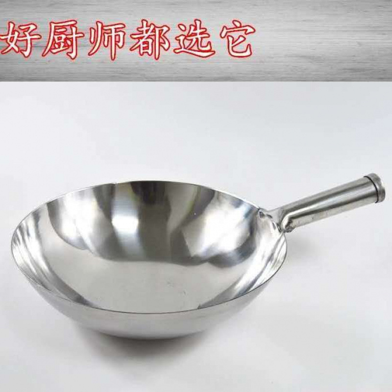 厚みのあるステンレス鋼の丸底中華鍋ホテルレストラン食堂家庭用ガスストーブ中華鍋ノンスティックパンコーティングなし