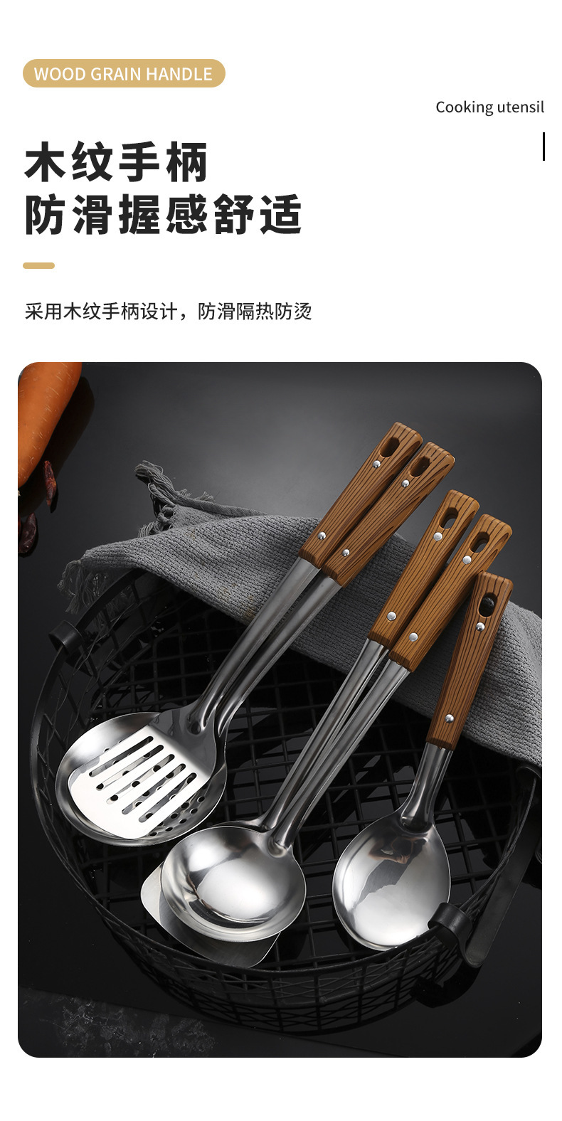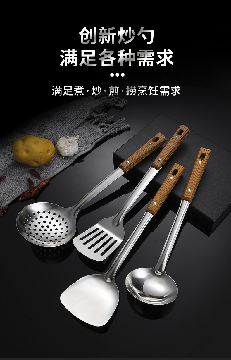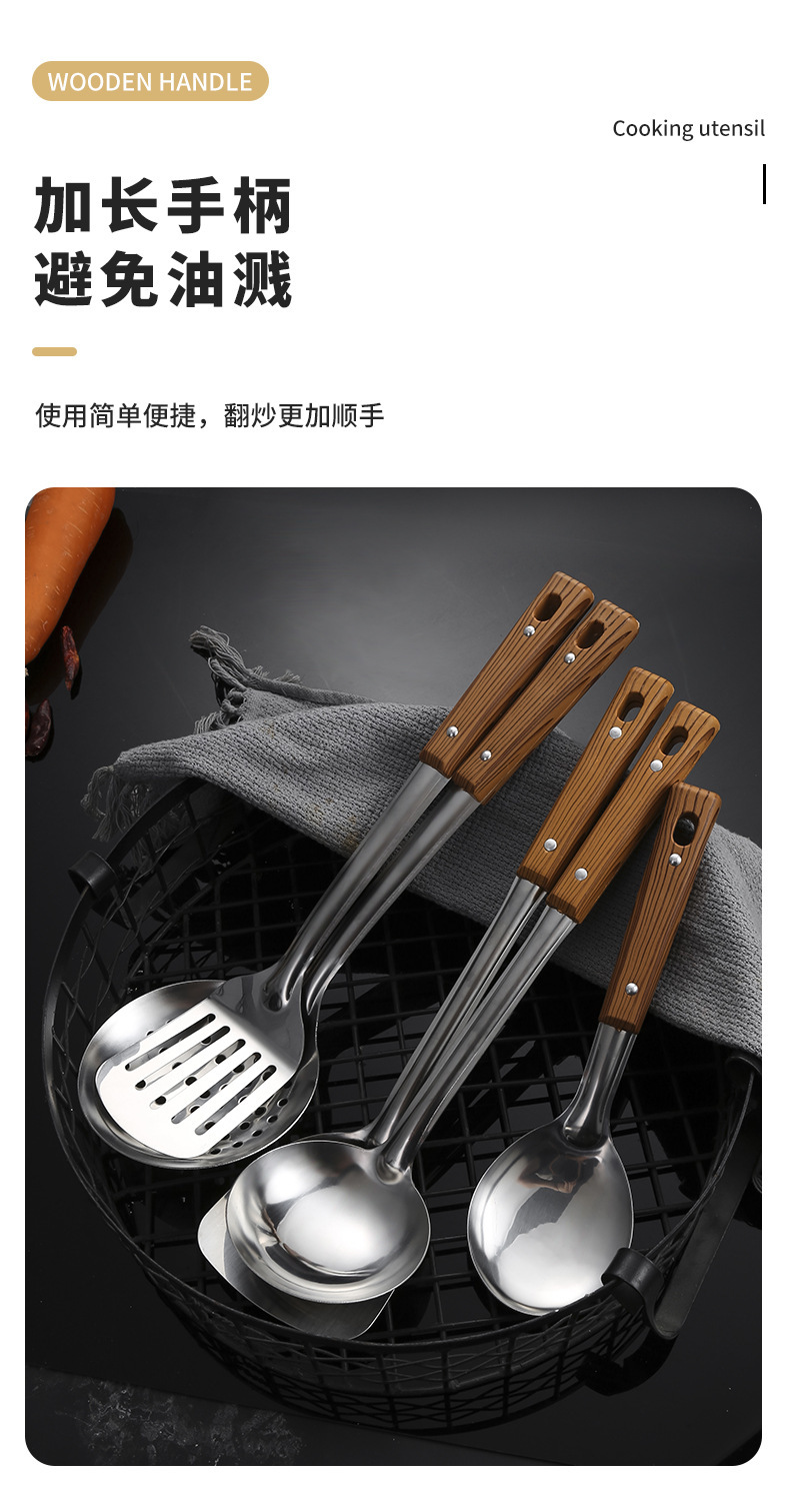 加厚304不锈钢炒菜铁铲子锅铲煎铲汤勺漏勺家用厨具套装厨师专用