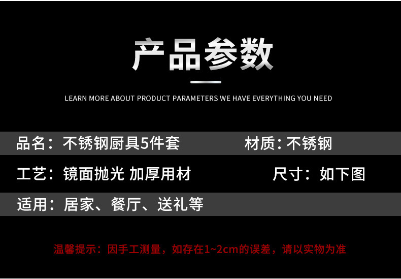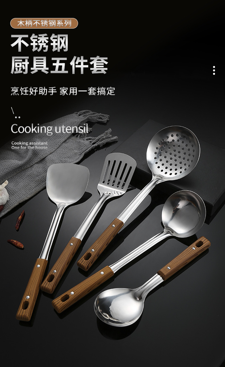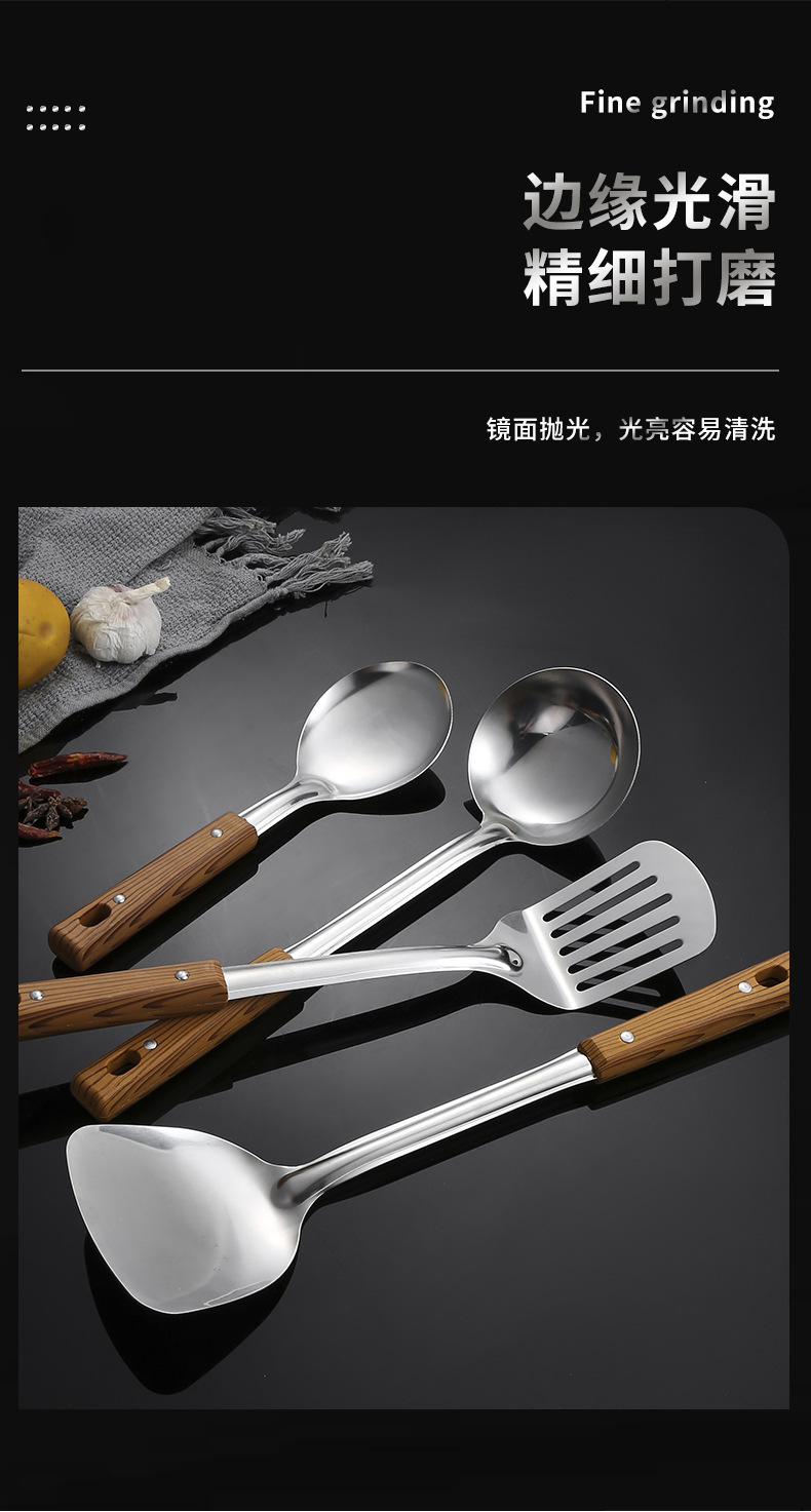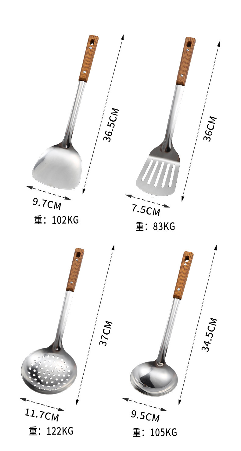 加厚304不锈钢炒菜铁铲子锅铲煎铲汤勺漏勺家用厨具套装厨师专用