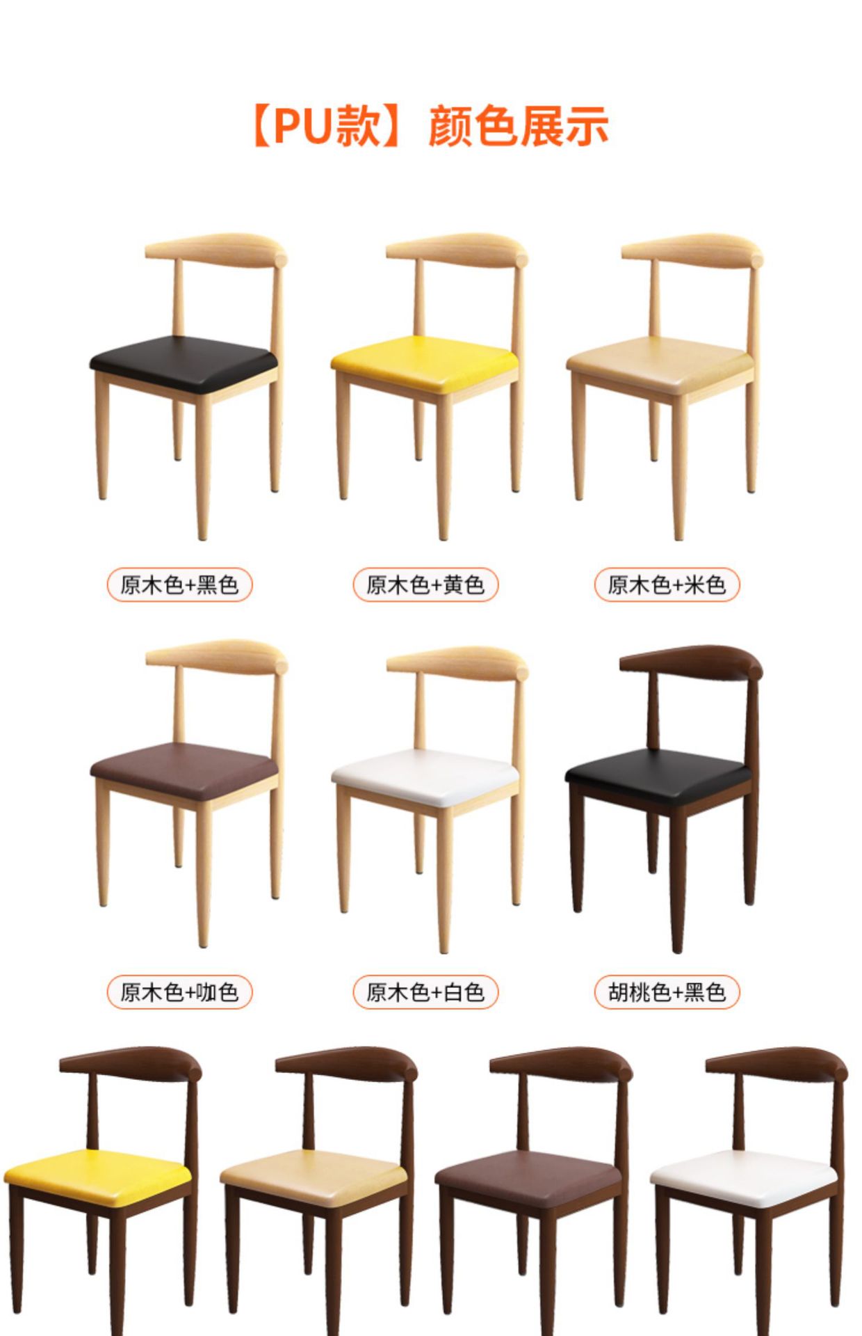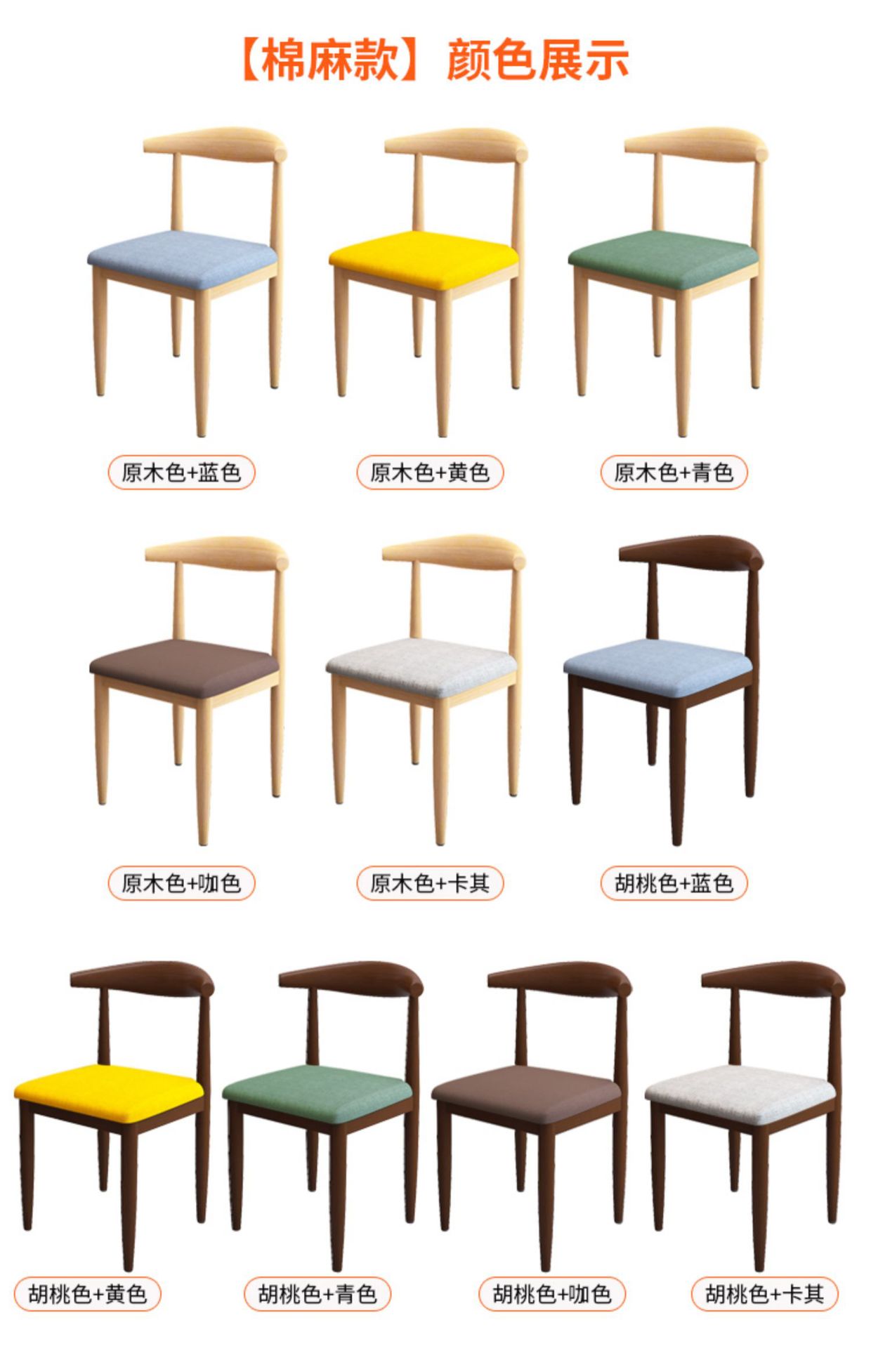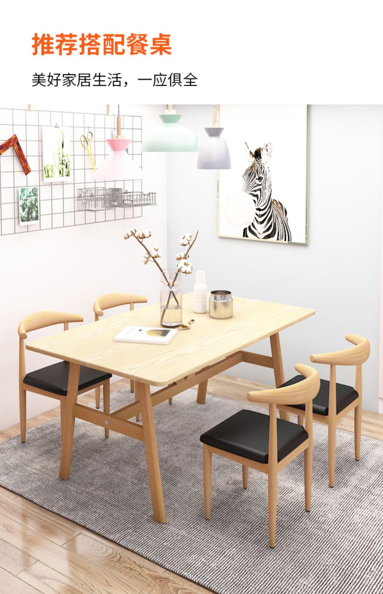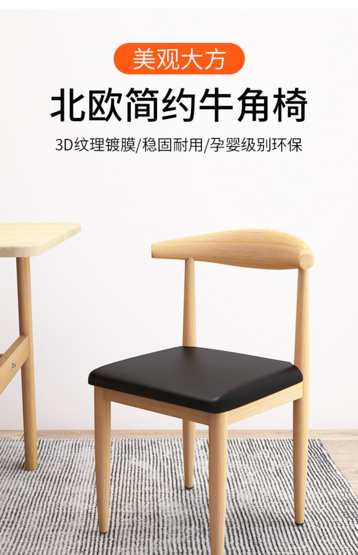 ダイニングチェア背もたれ北欧シンプルな学習スツールデスク学生学習寝室ホーム模造無垢材鉄ホーンチェア