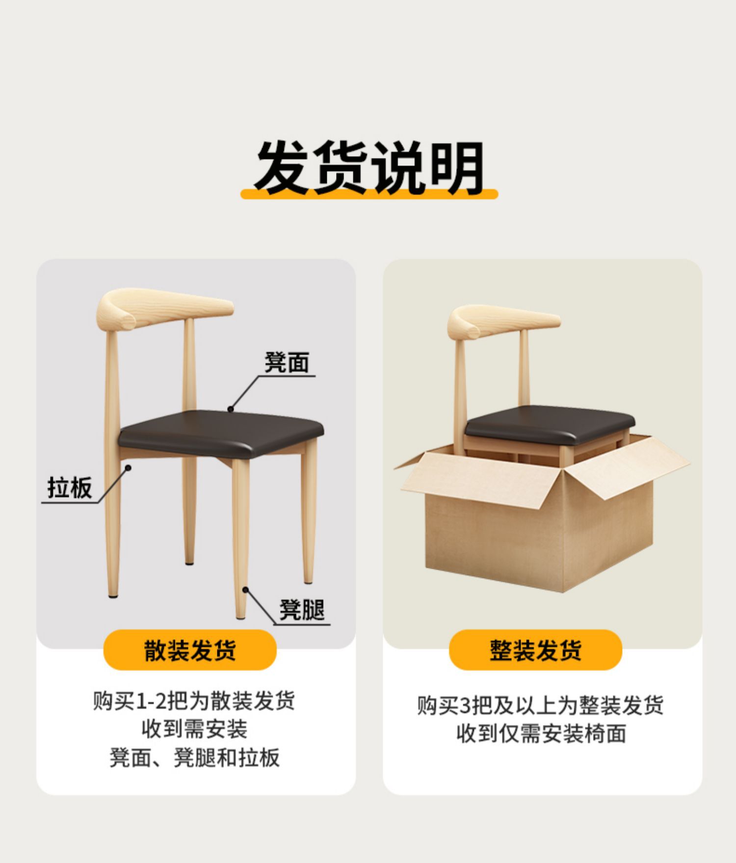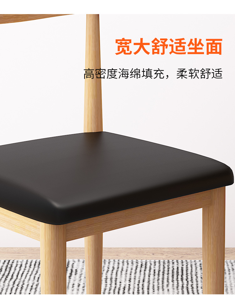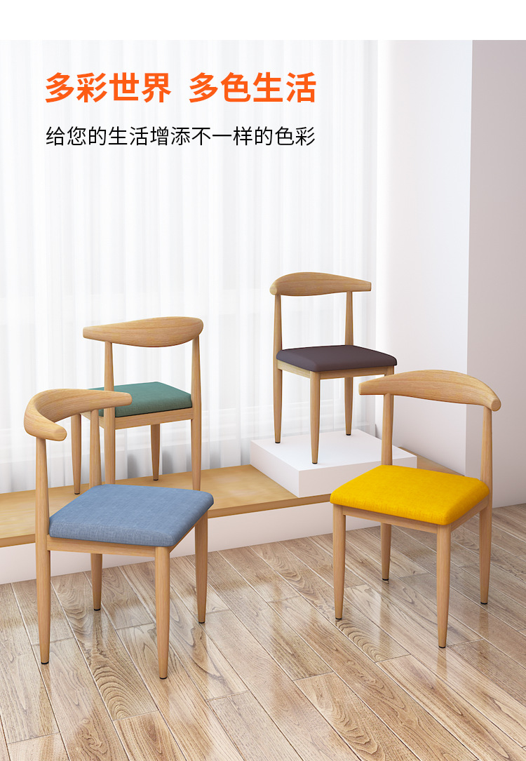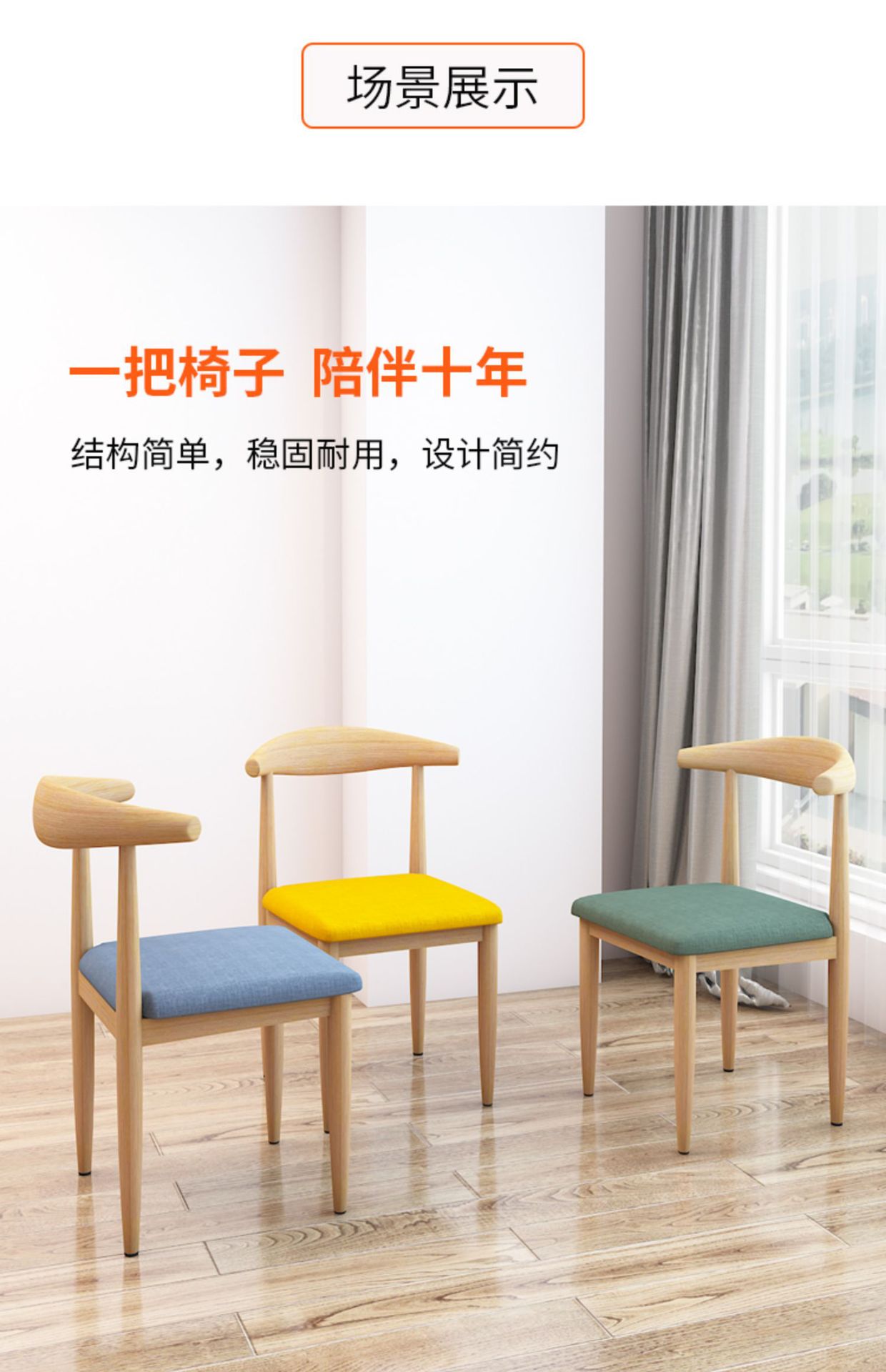 ダイニングチェア背もたれ北欧シンプルな学習スツールデスク学生学習寝室ホーム模造無垢材鉄ホーンチェア