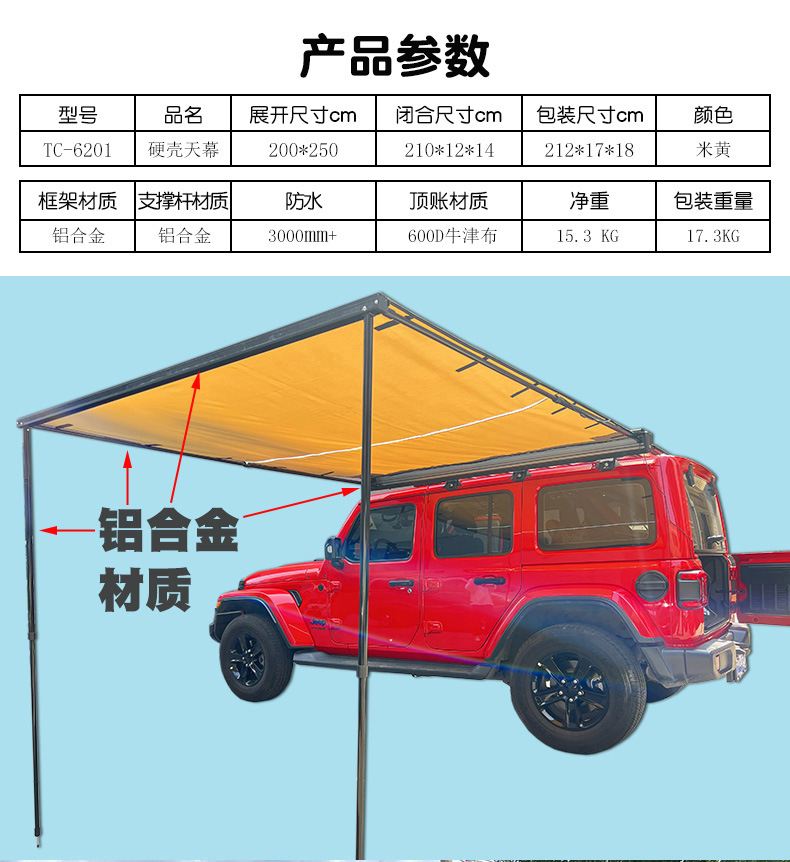 カーサイドテントビニールストレートプルキャノピーバークロスボーダーSUV車キャンプアルミ合金ハードシェルオックスフォード布防雨日よけ