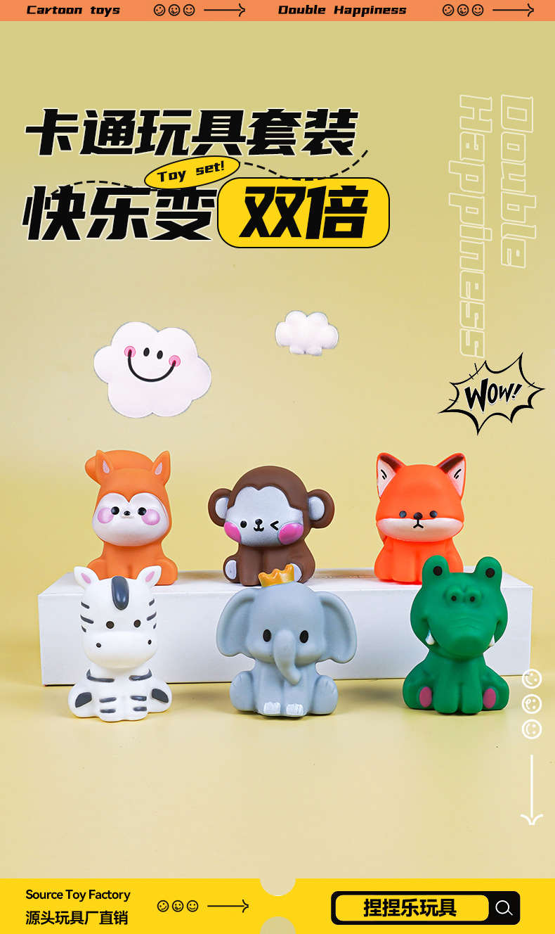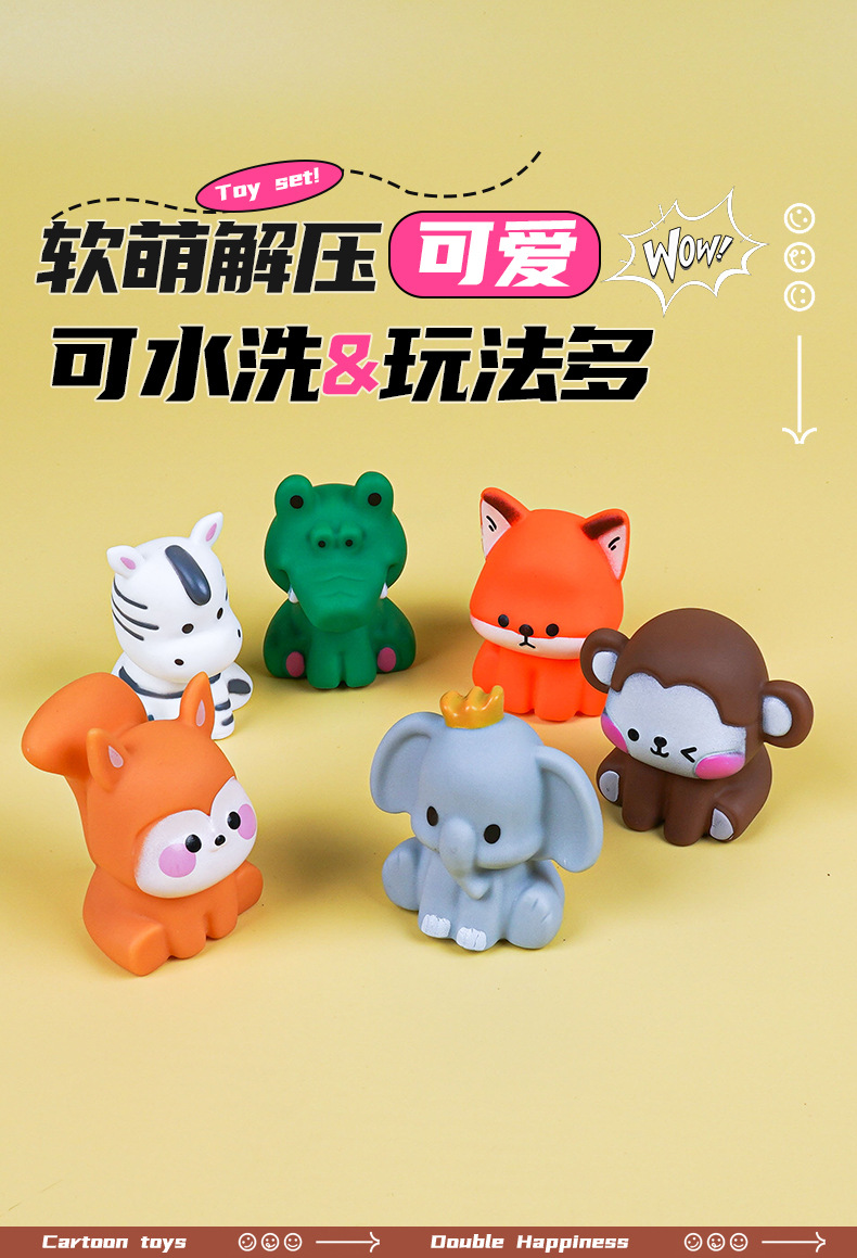 厂家批发森林动物仿真狮子大象兔子小鸡长颈鹿捏捏叫发声戏水玩具