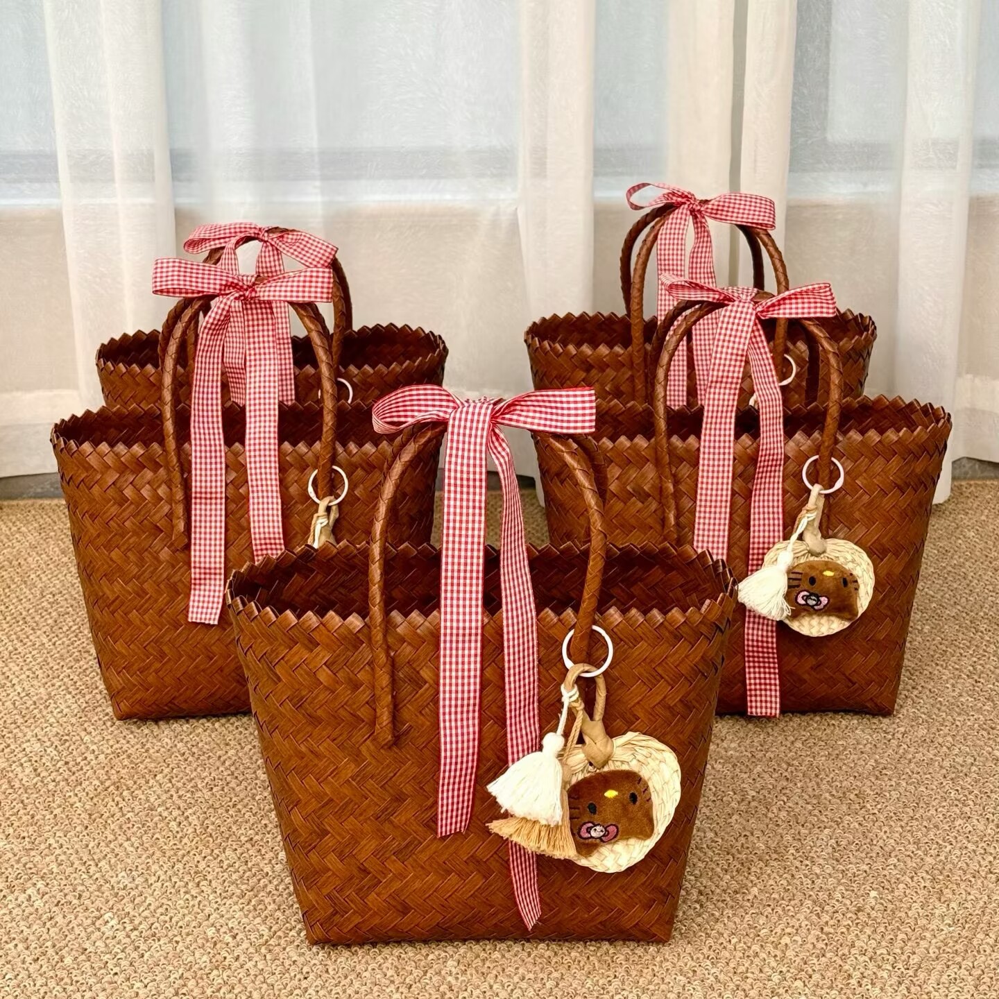 复古仿藤编编织包伴手礼菜篮子女士手提包日常通勤百搭手拎小方包