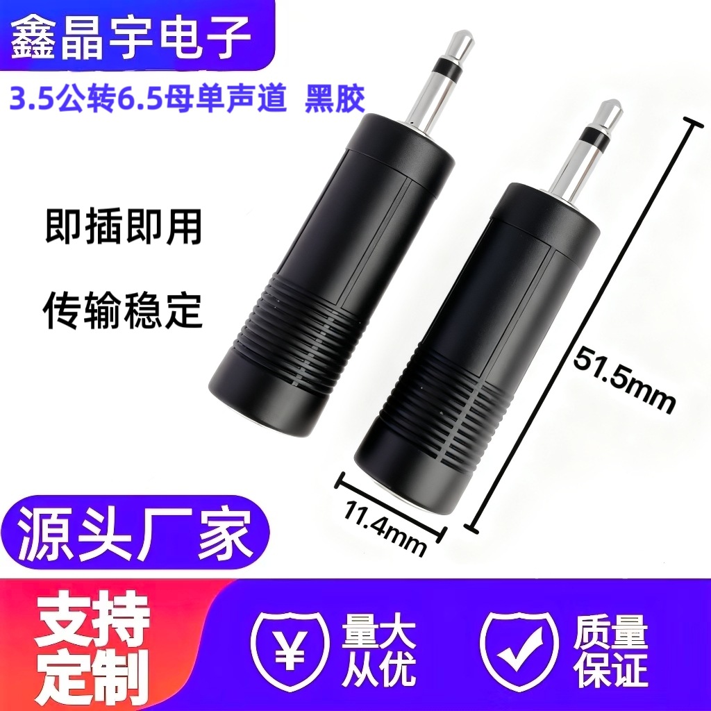 3.5单/6.5转接头 3.5公转6.5母音频转换头胶镍款