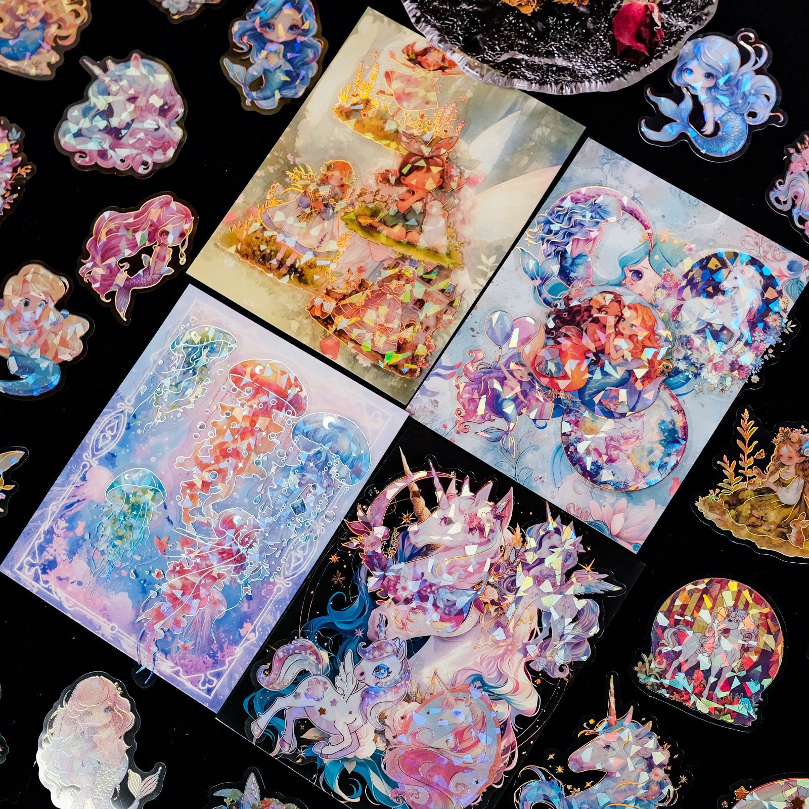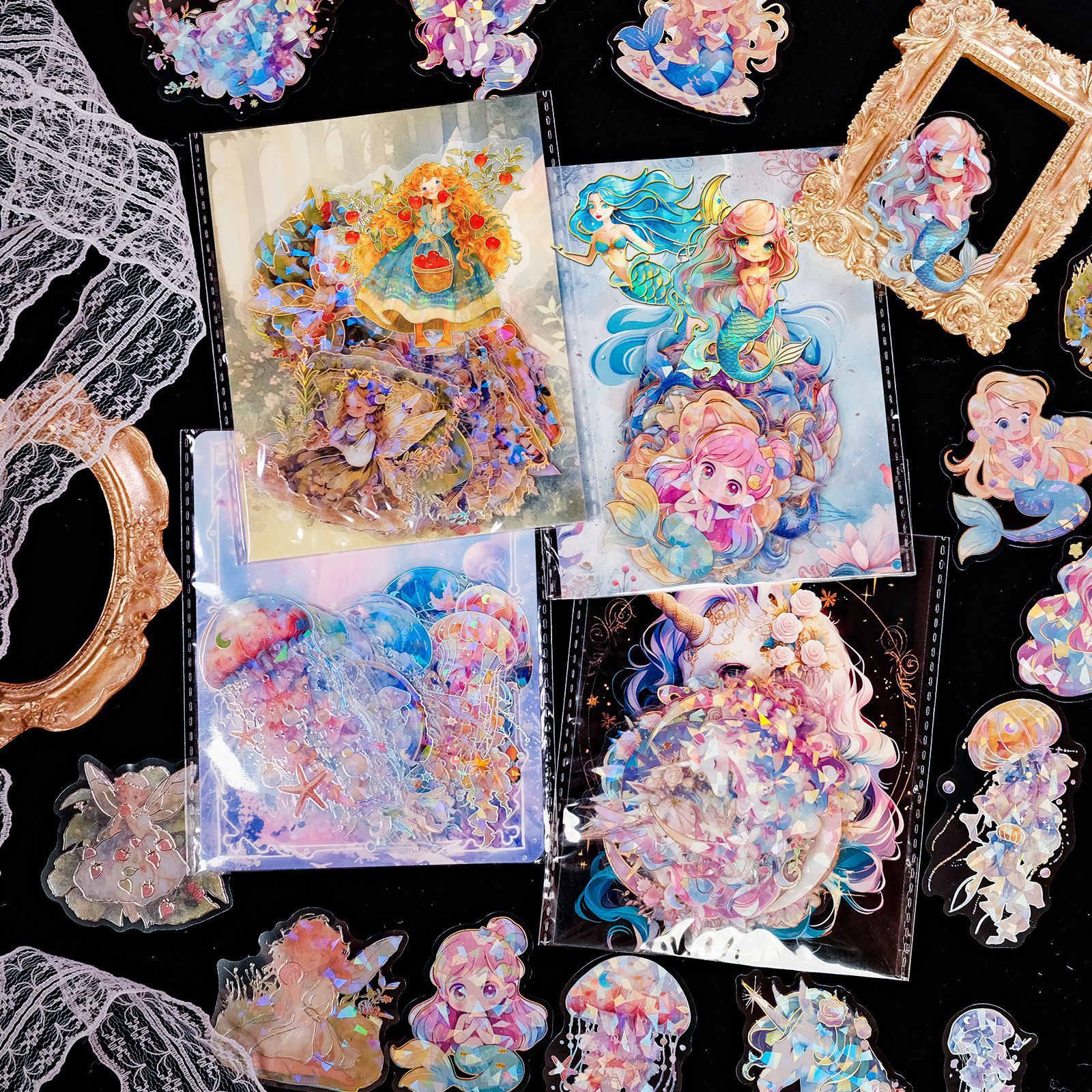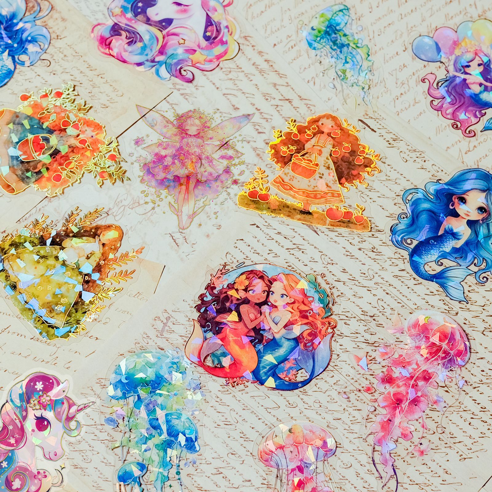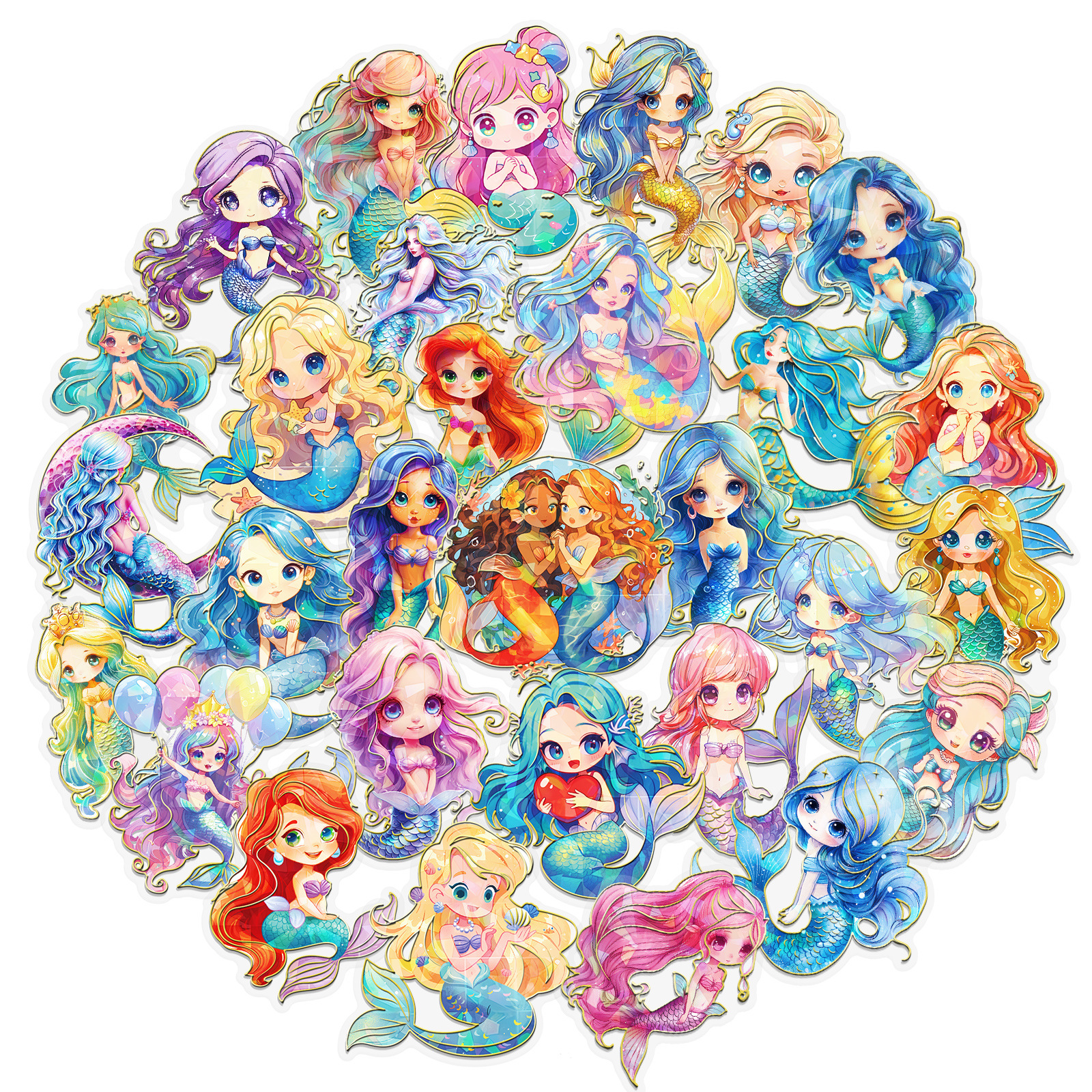 クロスボーダー30枚入り ファンタジーマーメイドステッカー レーザー箔押し加工 防水透明装飾ステッカー Amazon