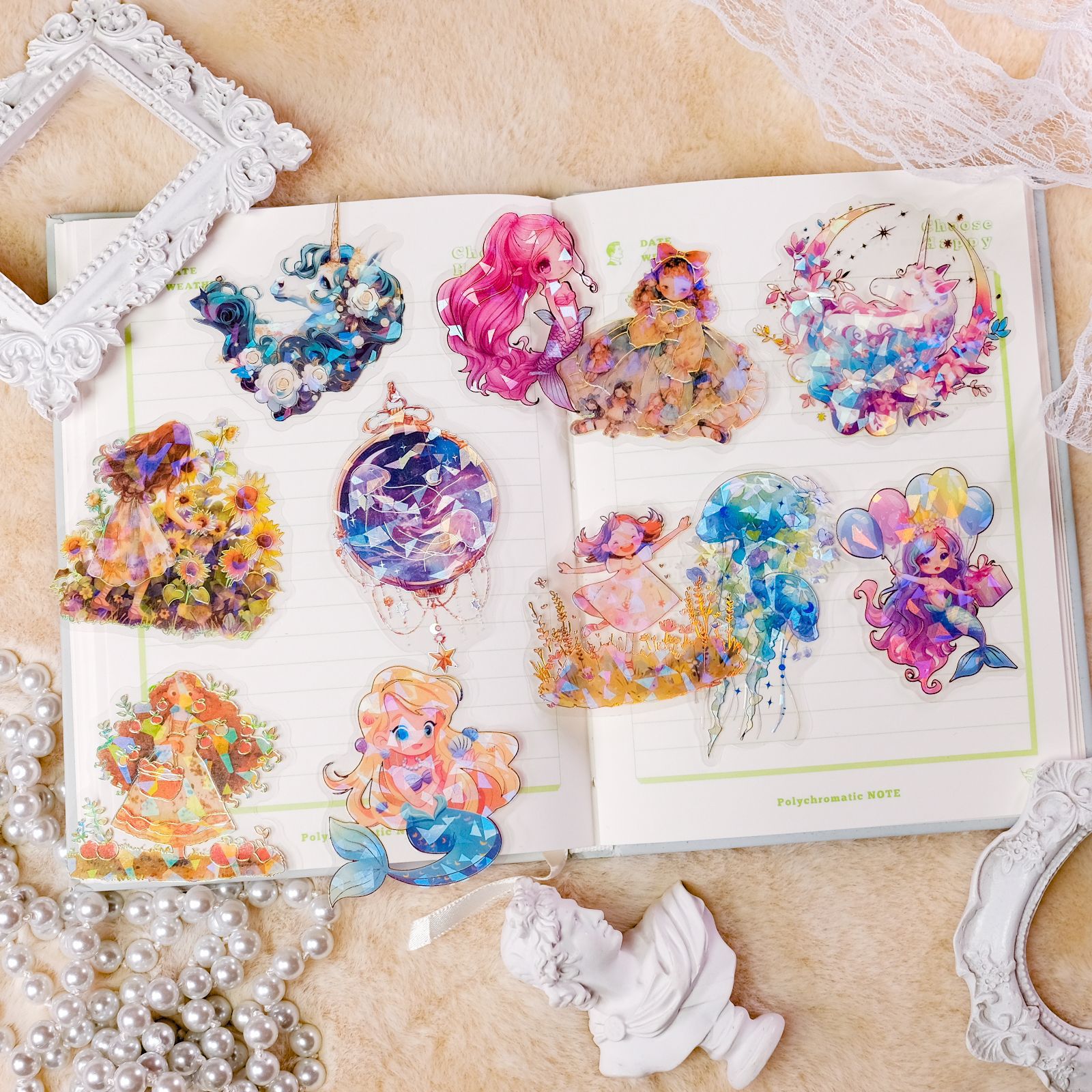 30-120张pet镭射烫金工艺高颜值透明贴纸独角兽公主贴纸外贸批发