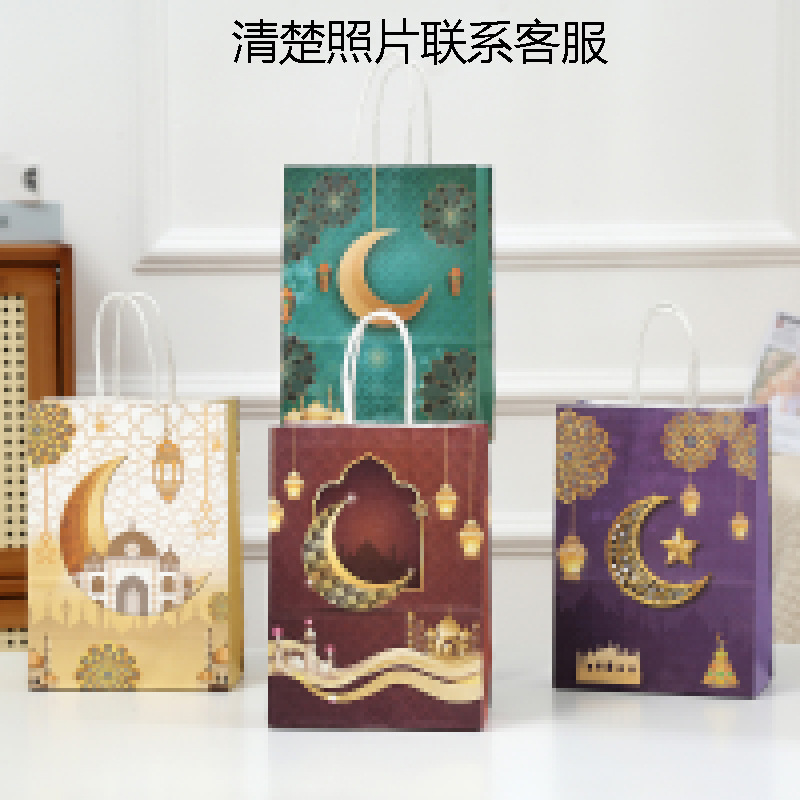跨境月亮节手提袋中东节日伴手礼牛皮纸袋通用派对糖果礼品袋子现